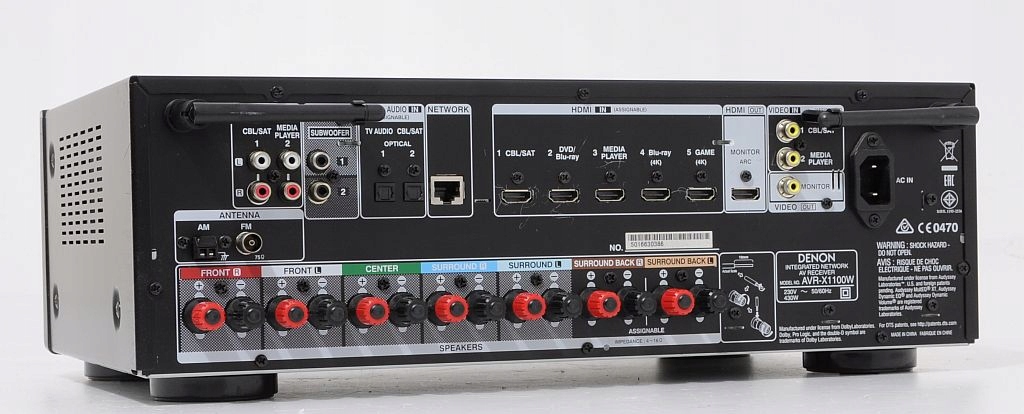 AVR-X1100W to 7.2-kanałowy, sieciowy amplituner kina domowego oferujący technologie znaną z najlepszych amplitunerów Denona z górnej półki i wyjątkową jakość. Siedem kanałów po 145 W każdy w połączeniu z wieloletnim doświadczeniem inżynierów Denona projektujących to urządzenie daje pewność, że dźwięk dochodzący do głośników będzie potężny, kontrolowany i szczegółowy. Oferujący jeszcze lepszą jakość dźwięku najnowszy amplituner serii X wyposażony jest w nieporównywalny z innymi amplitunerami zakres możliwości połączeniowych. Co ciekawe, nawet model klasy popularnej posiada wbudowaną funkcjonalność WiFi, co umożliwia łatwe połączenie urządzenia do domowej sieci oraz wygodną w obsłudze funkcjonalność Bluetooth.