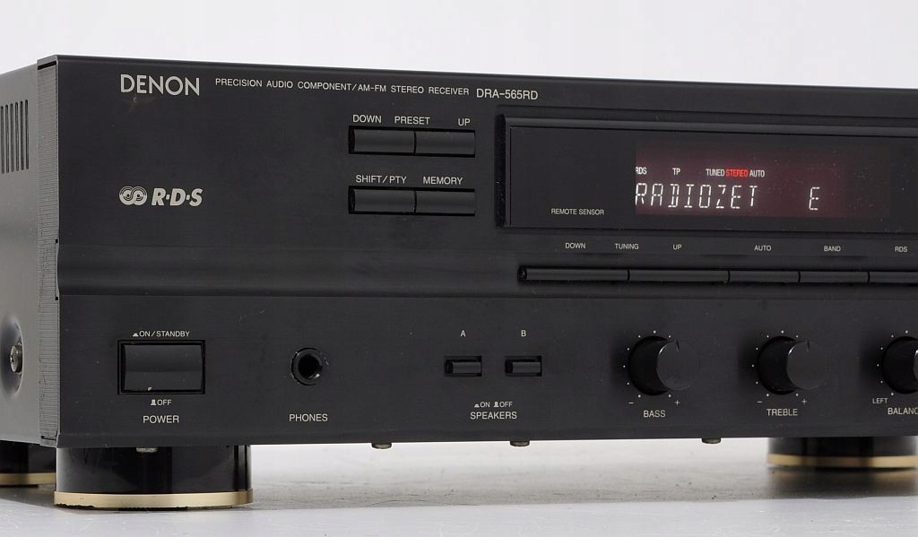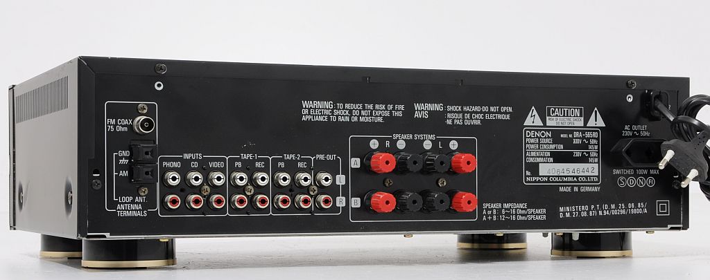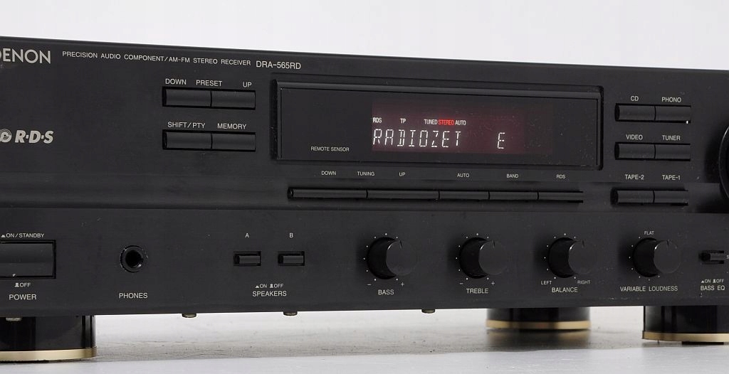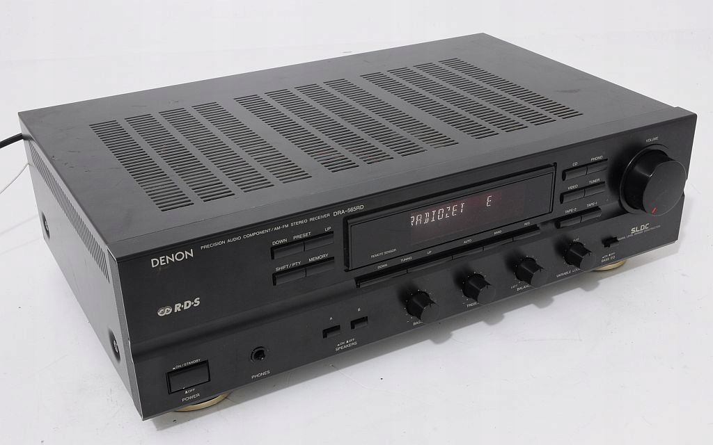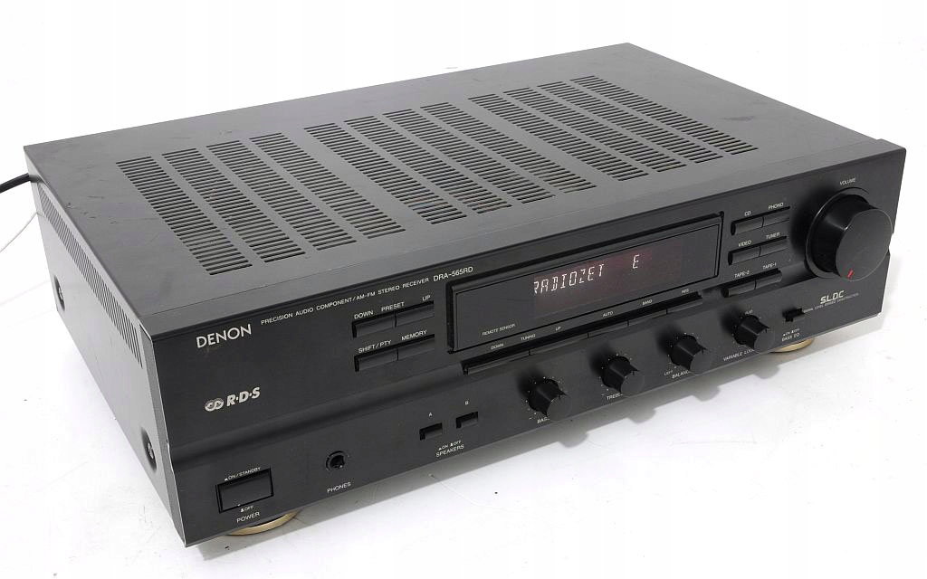 Stosunkowo świeży produkt firmy DENON, występujący jeszcze nie tak dawno na półkach sklepowych - dodatkowo w limitowanej edycji z grafitowym frontem. Konstrukcja dobrze oceniana w prasie audio (HiFi test , ocena bardzo dobry, „żaden nie zagrał tak swobodnie, przestrzennie i precyzyjnie...”) jak i przez samych użytkowników. Firmie Denon doskonale udało się połączyć zintegrowany wzmacniacz stereo z tunerem, do tego stopnia, że bez obaw DRA-565RD można porównywać z modelem wzmacniacza Denon z serii New Optical Class A. Wykonany zgodnie ze starymi wytycznymi, końcówka mocy oparta na 4 tranzystorach (po 2 na kanał), kondensatorach o słusznej pojemności oraz solidnym zabudowanym transformatorze. Dodatkowo zastosowano zasadę S.L.D.C – przy dyskretnej strukturze poszczególnych obwodów zapewnia minimalne wzajemne oddziaływanie podzespołów. Ma to oczywiście korzystny wpływ na dźwięk. Urządzenie bardzo funkcjonalne wyposażone w system RDS oraz regulator - płynnie regulowany LOUD. Amplituner można rozbudować o 3 dodatkowe urządzenia + gramofon, na tylniej ściance znajduje się dodatkowe gniazdo AC do podpięcia (zasilanie) innego segmentu systemu. Ciekawym udogodnieniem jest wyjście PRE OUT ! Sekcja tunera sprawuje się wyśmienicie, nie ma wygórowanych wymagań wobec anteny – na wewnętrznej, pokojowej odbiera bezproblemowo wszystkie dostępne rozgłośnie. Czołówka wykonana z aluminium, wyświetlacz świeci równomiernie na całej swojej długości jest przejrzysty, czyściutki. Jest dużo fotek do oglądnięcia i na ich podstawie mogą Państwo dokonać samooceny, w razie wątpliwości proszę śmiało pytać.