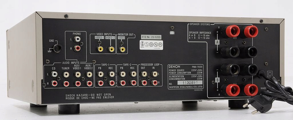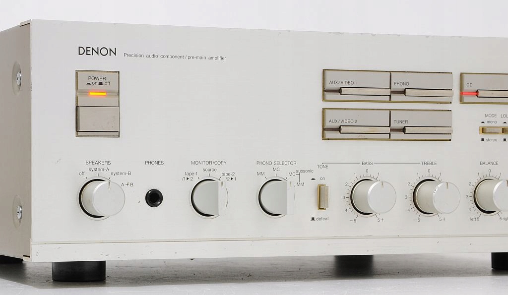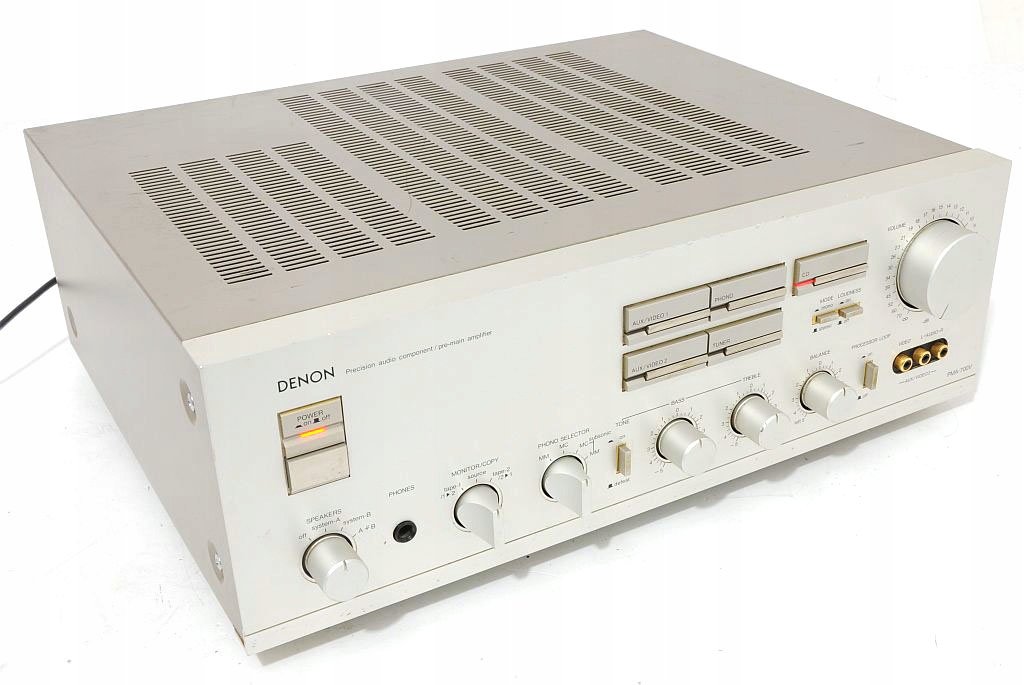 Jest to doskonale znany przez wszystkich miłośników audio o zacięciu audiofilskim wzmacniacz firmy która do dziś nie splamiła swego wizerunku masową produkcją. Urządzenie wywodzi się z niewątpliwie jednej z najbardziej udanych klasycznych serii , nie tylko pod względem brzmieniowym ale również wizualnym. DENON to bezpośredni rywal kultowych firm tj. NAD, LUXMAN i jak się okazało jeden z nielicznych który stawił im czoła – cenowo i brzmieniowo ... Brzmienie jak przystało na wzmacniacz audio , a nie przetwornice prądu … czyli liniowa charakterystyka , czystość , dobra scena i stereo czyli to co powinien reprezentować przyzwoity wzmacniacz. Odnośnie mocy to wiadomo… 2 X 90 W w wydaniu tej firmy to rzeczywista wartość, z ciekawości proszę porównać jaką moc oferują niższe modele. Technicznie super, bez napraw, wszystko oryginalne, przyciski, potencjometry chodzą jak nowe! Budowa wzmacniacza klasyczna oparta na tranzystorowych końcówkach mocy, odprowadzanie ciepła skierowane ku górze, kondensatory filtrujące o dużej pojemności, potencjometry przełączniki renomowanych firm, całość wspierana solidnym transformatorem!!!