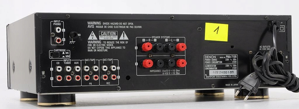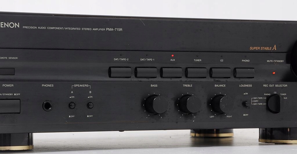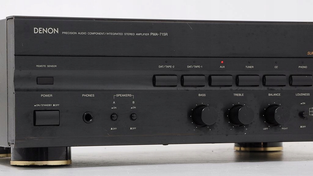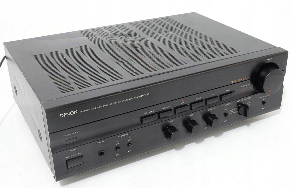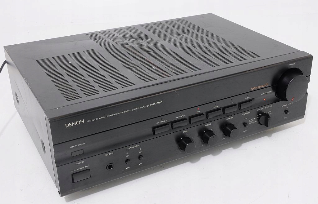 Przedmiotem sprzedaży jest wzmacniacz Denon'a przynależący do ścisłej czołówki urządzeń tego producenta. Oferowane urządzenie jest masywne, posiada aluminiowy panel przedni, metalowe są także 2 główne pokrętła (Volume i Selector.). Wzmacniacz bardzo ładnie się prezentuje, swym wyglądem nawiązuje do klasycznego stylu wzmacniaczy Denon, a zaraz widać, że przynależy do jednej z ostatnich serii sprzętu audio tego producenta. Urządzenie nafaszerowane jest wysokiej klasy elektroniką. Dźwięk, który oferuje sprzedawany wzmacniacz jest bardzo miły dla ucha. Podstawę stanowi silny i niski bass, który jednak zachowuje kulturę i nie przysłania reszty pasma. Na uwagę zasługuje także średnica, szczególnie kobiece wokale urzekają swoją autentycznością. Sprzęt posiada wiele funkcji, np. Loudness pozwalający na dodatkowe podbicie. Na pochwałę zasługują także porządne zakrętki głośnikowe, w które można wpuścić nawet bardzo grube kable. Podsumowując, Denon PMA-715R, to nietuzinkowy wzmacniacz z wyższej półki, który w tym przedziale cenowym ma niewielu konkurentów. POLECAM !!! Emocje gwarantowane !!!
