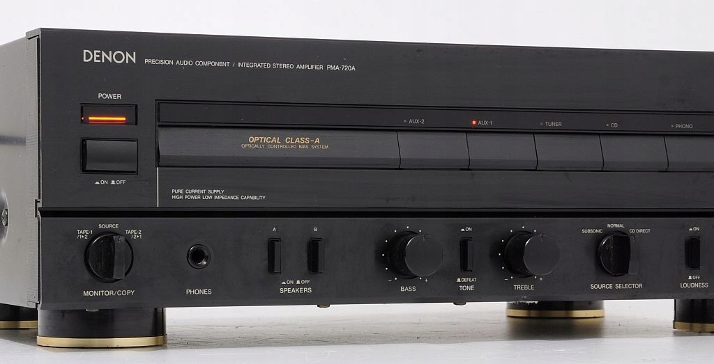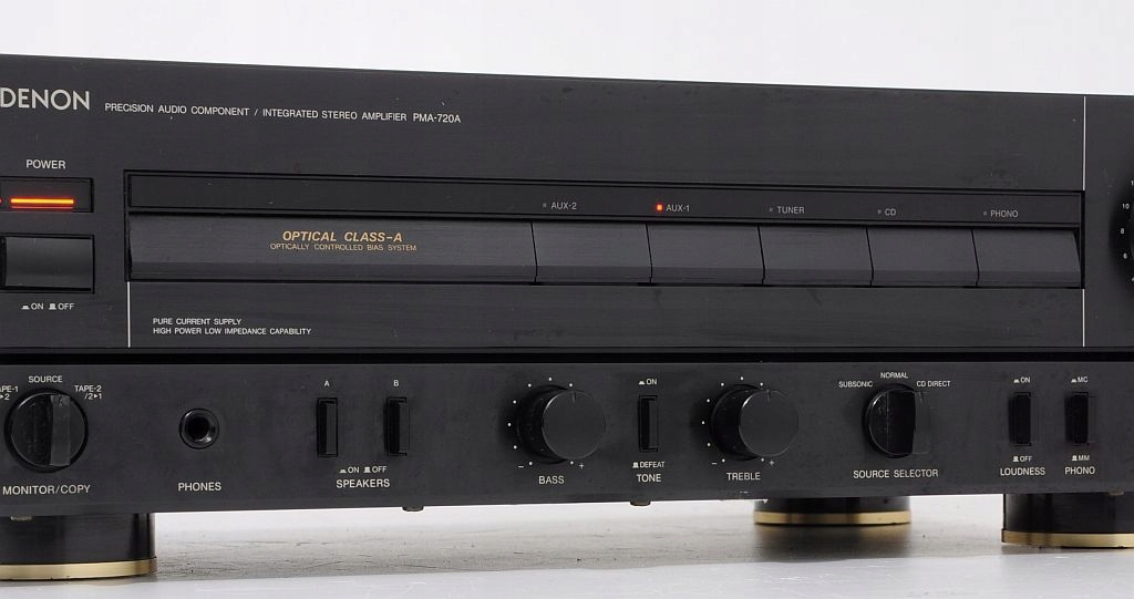 Budowa wzmacniacza klasyczna oparta na tranzystorowych końcówkach mocy, odprowadzanie ciepła skierowane ku górze, kondensatory filtrujące o dużej pojemności, potencjometry przełączniki renomowanych firm, całość wspierana solidnym transformatorem!!! Jest to doskonale znany przez wszystkich miłośników audio o zacięciu audiofilskim wzmacniacz firmy która do dziś nie splamiła swego wizerunku masową produkcją. Urządzenie wywodzi się z niewątpliwie jednej z najbardziej udanych klasycznych serii , nie tylko pod względem brzmieniowym ale również wizualnym. DENON to bezpośredni rywal kultowych firm tj. NAD, LUXMAN i jak się okazało jeden z nielicznych który stawił im czoła – cenowo i brzmieniowo ... Brzmienie jak przystało na wzmacniacz audio , a nie przetwornice prądu … czyli liniowa charakterystyka , czystość , dobra scena i stereo czyli to co powinien reprezentować przyzwoity wzmacniacz. Odnośnie mocy to wiadomo… 2 X 100W w wydaniu tej firmy to rzeczywista wartość, z ciekawości proszę porównać jaką moc oferują niższe modele.