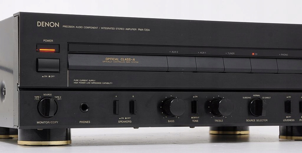Budowa wzmacniacza klasyczna oparta na tranzystorowych końcówkach mocy, odprowadzanie ciepła skierowane ku górze, kondensatory filtrujące o dużej pojemności, potencjometry przełączniki renomowanych firm, całość wspierana solidnym transformatorem!!! Jest to doskonale znany przez wszystkich miłośników audio o zacięciu audiofilskim wzmacniacz firmy która do dziś nie splamiła swego wizerunku masową produkcją. Urządzenie wywodzi się z niewątpliwie jednej z najbardziej udanych klasycznych serii , nie tylko pod względem brzmieniowym ale również wizualnym. DENON to bezpośredni rywal kultowych firm tj. NAD, LUXMAN i jak się okazało jeden z nielicznych który stawił im czoła – cenowo i brzmieniowo ... Brzmienie jak przystało na wzmacniacz audio , a nie przetwornice prądu … czyli liniowa charakterystyka , czystość , dobra scena i stereo czyli to co powinien reprezentować przyzwoity wzmacniacz. Odnośnie mocy to wiadomo… 2 X 100W w wydaniu tej firmy to rzeczywista wartość, z ciekawości proszę porównać jaką moc oferują niższe modele.