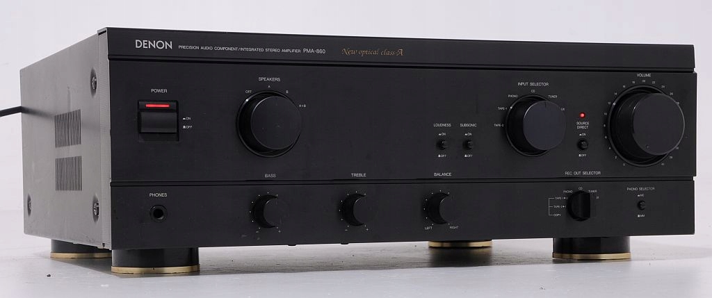 Budowa wzmacniacza klasyczna oparta na tranzystorowych końcówkach mocy, odprowadzanie ciepła skierowane ku górze, kondensatory filtrujące o dużej pojemności, potencjometry przełączniki renomowanych firm, całość wspierana solidnym transformatorem!!! Jest to doskonale znany przez wszystkich miłośników audio o zacięciu audiofilskim wzmacniacz firmy która do dziś nie splamiła swego wizerunku masową produkcją. Urządzenie wywodzi się z niewątpliwie jednej z najbardziej udanych klasycznych serii , nie tylko pod względem brzmieniowym ale również wizualnym. DENON to bezpośredni rywal kultowych firm tj. NAD, LUXMAN i jak się okazało jeden z nielicznych który stawił im czoła – cenowo i brzmieniowo ... Brzmienie jak przystało na wzmacniacz audio , a nie przetwornice prądu … czyli liniowa charakterystyka , czystość , dobra scena i stereo czyli to co powinien reprezentować przyzwoity wzmacniacz. Odnośnie mocy to wiadomo ponad 100W na kanał w wydaniu tej firmy to rzeczywista wartość, z ciekawości proszę porównać jaką moc oferują niższe modele.