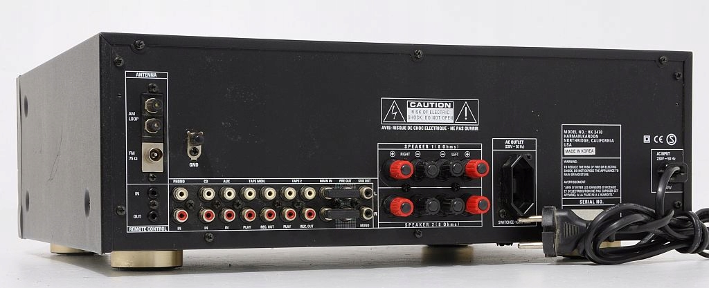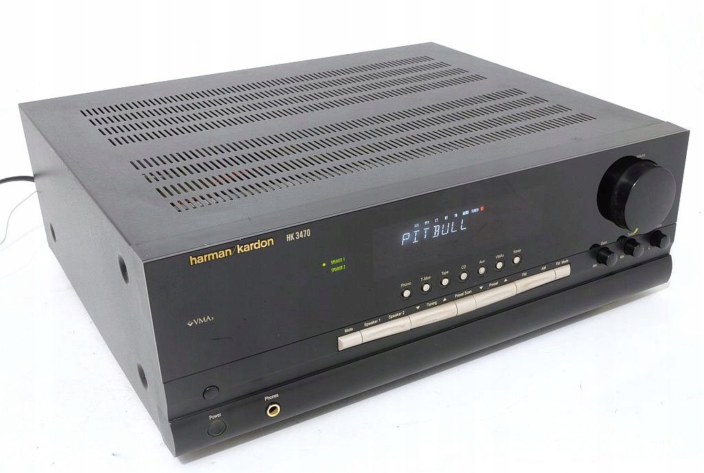 Do zaoferowania mam świetny amplituner stereo marki Harman/Kardon. Model HK 3470 pochodzi z bardzo udanej i cenionej serii tego producenta. Charakteryzuje się bardziej analogowym i ciepłym brzmieniem niż obecne konstrukcje. Posiada znakomitą dynamikę i bas. Regulacja tonów jest bardzo namacalna. Jest to sprzęt dla prawdziwego miłośnika stereo, ale posiada również wyjścia na subwoofer aktywny, pozwala to wzmocnić dolne pasmo dodatkowym głośnikiem niskotonowym. Stylistyka urządzenia nie pozostawia złudzeń że to Harman - sprzęt wygląda odważnie, ponadczasowo i bardzo zwraca na siebie uwagę