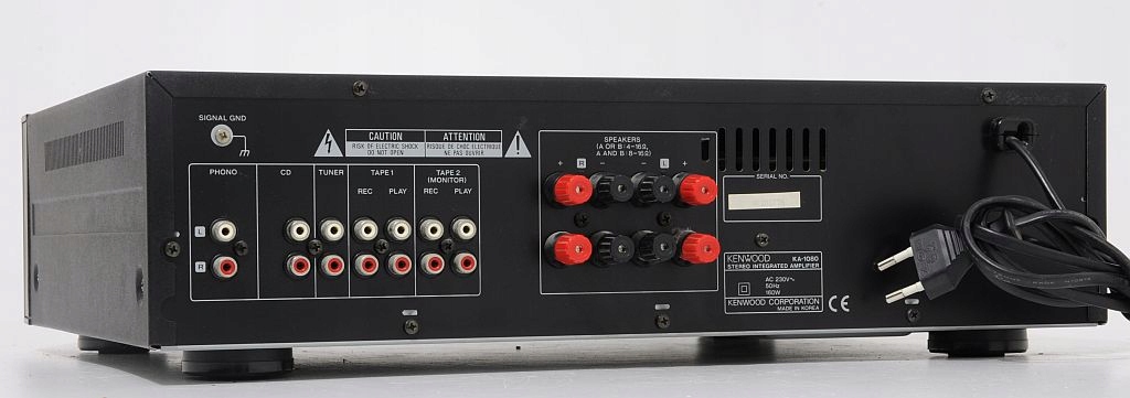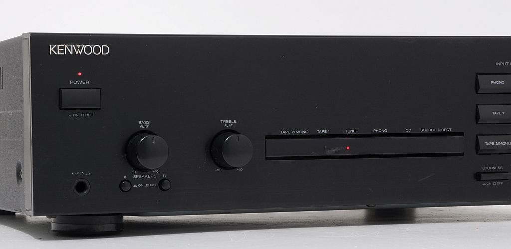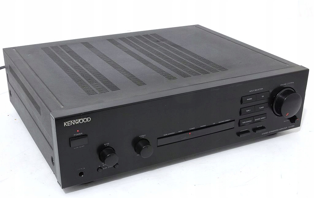 Uniwersalny dobrze znany wzmacniacz KENWOOD zaliczany do średniej klasy urządzeń budżetowych. Ostatni chyba błysk firmy „Kenwood”, tradycyjna konstrukcja wzmacniacza. Końcówka mocy oparta na tranzystorach (takie jak w Pioneer`ach z serii Reference) 4 x Toshiba (nawet tu widnieje napis „Japan”), załączane przekaźnikiem „Dec”, kondensatory o słusznej, solidne, pokaźnych rozmiarów trafo „Bando”, firmowe potencjometry – to mówi samo za siebie! Całość przekłada się na grę wzmacniacza, który gra na poziomie starych, dobrych „kanciaków”.