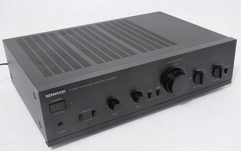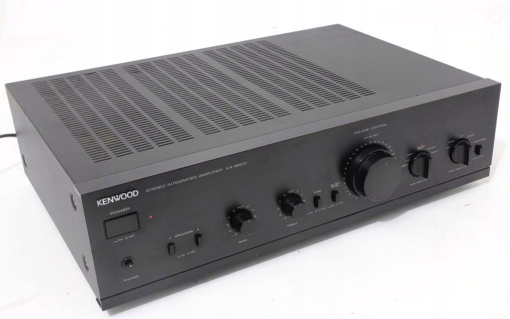 Dziś taki wzmacniacz można powoli sklasyfikować w kategorii klasyków lat 90. Piękny harmonijny design - aluminiowa czołówka. Kenwood ten jest bardzo solidnie wykonany , końcówka tradycyjna na tranzystorach - lepiej być nie może w tej klasie sprzętu – ogromny transformator sieciowy. Podkreślę raz jeszcze uniwersalny DESIGN pasujący niemalże do wszystkich klocków KENWOOD z ostatniej dekady.