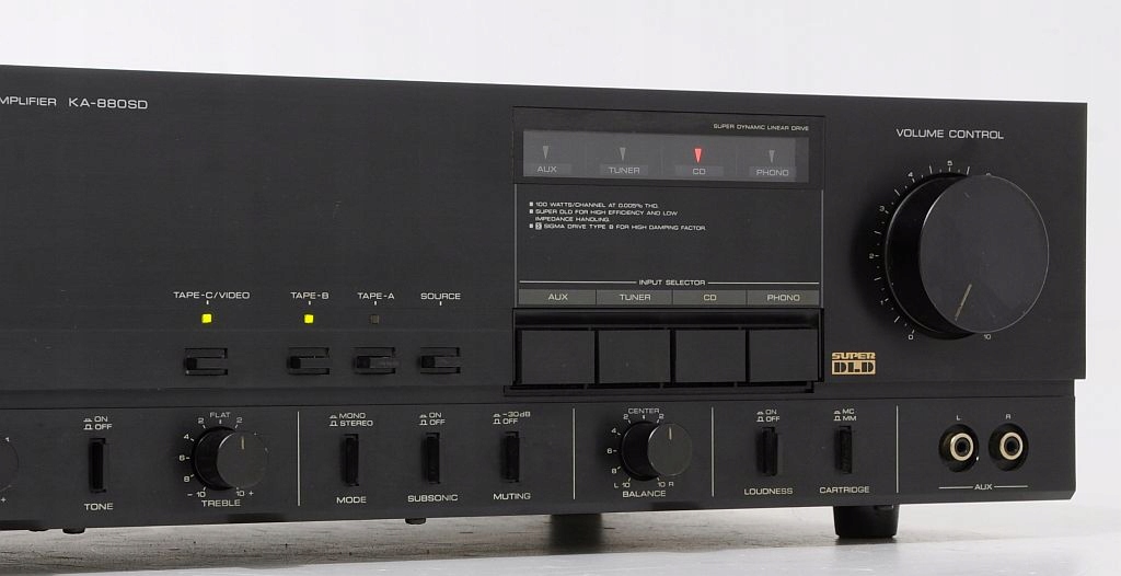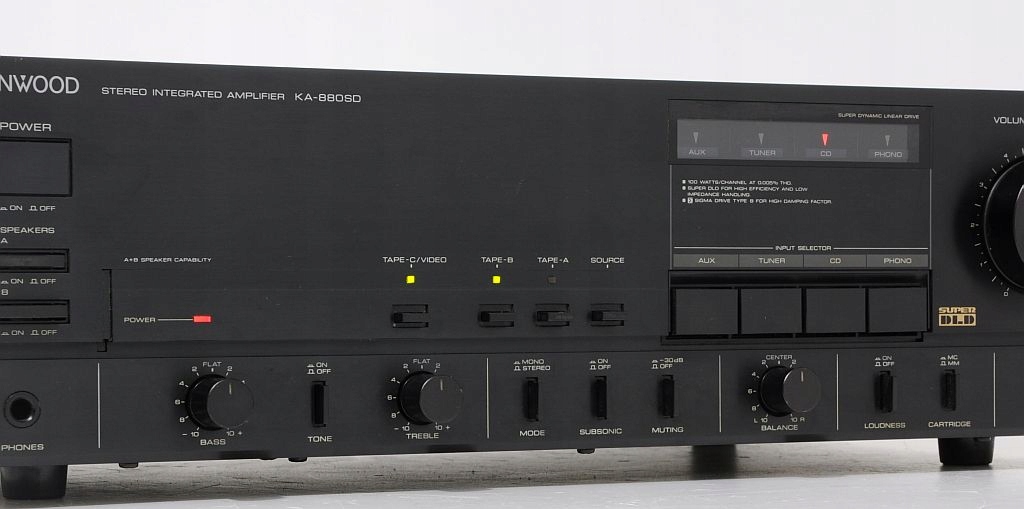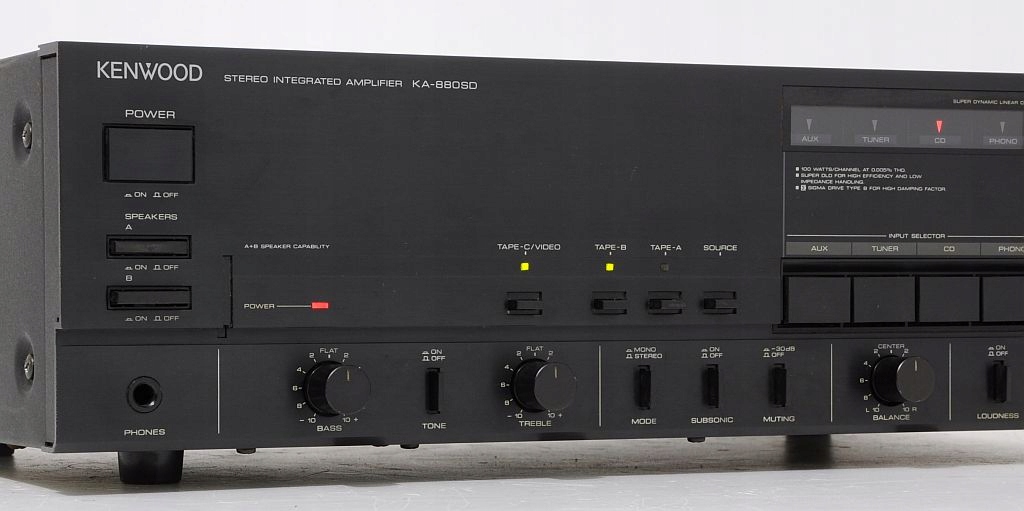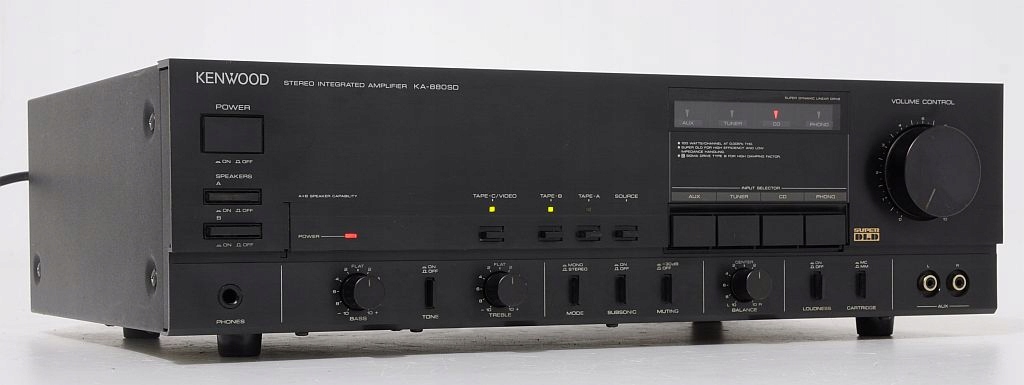 Wybitny wzmacniacz zintegrowany firmy Kenwood z przełomu lat 80/90, jeden z najlepszych wyprodukowanych przez tę firmę. Dedykowany do współpracy z legendarnym odtwarzaczem DP-1100 czy tunerem KT-890. Całość oparta na najlepszych japońskich podzespołach, ogromne trafo, wielkie kondensatory, końcówki mocy oparte o wielkie tranzystory. A brzmienie jest naprawdę na bardzo wysokim poziomie - wzmacniacz bez problemu może konkurować z nowymi urządzeniami o znacznie wyższej cenie. Sprzęt jest w pełni sprawny i gra znakomicie, toteż świetnie sprawdzi się także w towarzystwie urządzeń innych firm.
