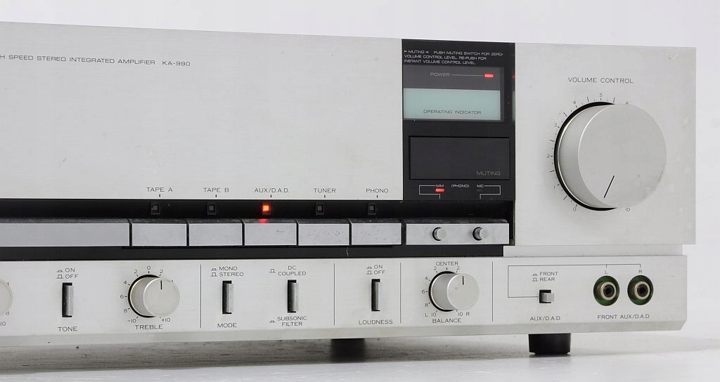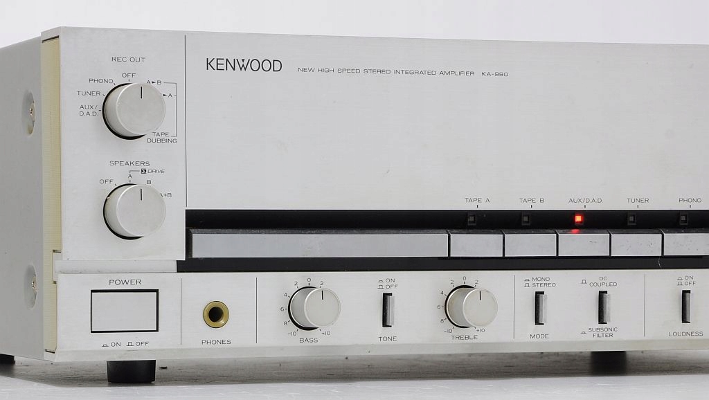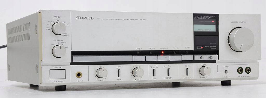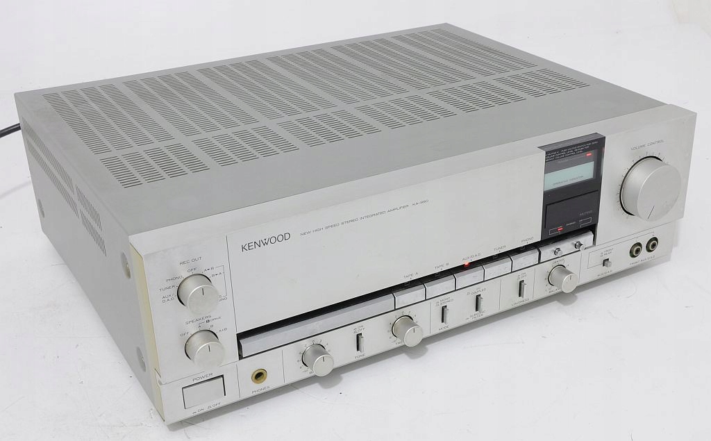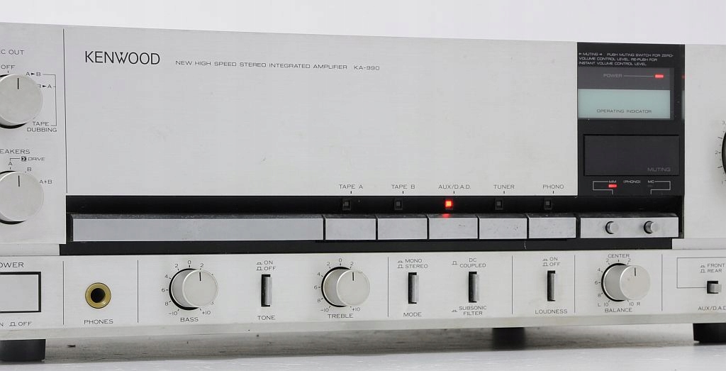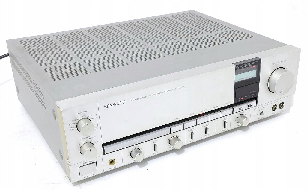 Kenwood KA-990 oferuje dynamiczne i energiczne brzmienie z mocnym, dobrze kontrolowanym basem. Średnica jest naturalna i czytelna, natomiast góra pasma pozostaje klarowna bez nadmiernej ostrości. Wzmacniacz dobrze radzi sobie zarówno z muzyką rockową, jak i elektroniką czy jazzem.
