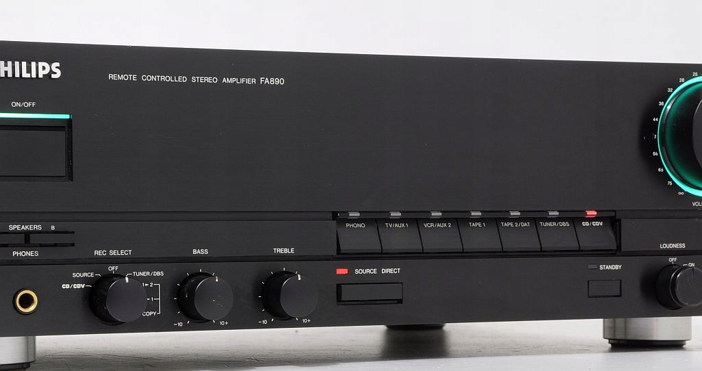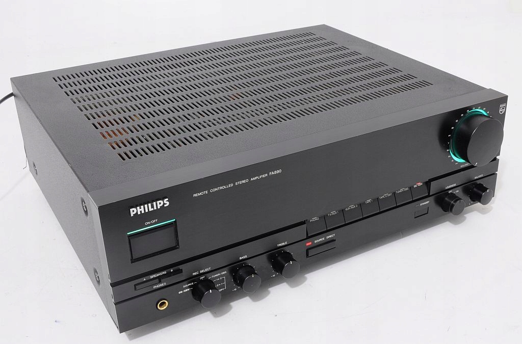 Jest to jeden z kultowych produktów firmy Philips – urządzenie pochodzi z lat gdy powstawały najlepsze wzmacniacze lat 80 czyli. W doborowym towarzystwie znalazł się również ten produkt. Bardzo często spotyka się ten wzmacniacz w konfiguracji z napędem CD880 – co pozwala prześcignąć teoretycznie „grubsze ryby”. Wzmacniacz gra rewelacyjnie, bardzo dobry detal , brak natarczywego basu i średnica którą słychać. Osobiście wyrzuciłbym z tego klocka regulację tonów bo przy dobrych kolumnach i Cd jest zupełnie zbędna – tylko DIRECT i VOLUME ;) Polecam to urządzenie wszystkim którzy cenią w sprzęcie naturalność a nie efekciarstwo… Dobra propozycja dla osób zaczynających lub kontynuujących przygodę z porządnym stereo.