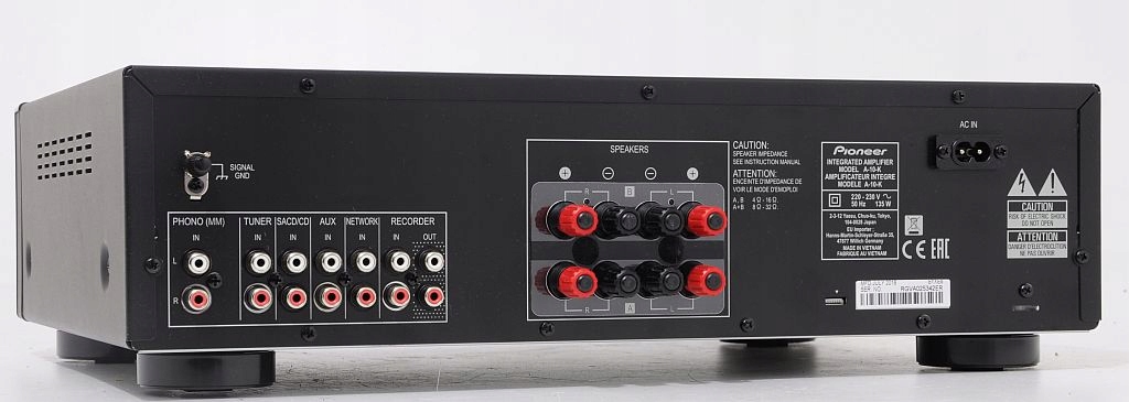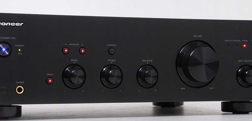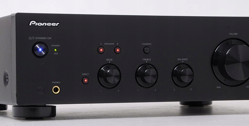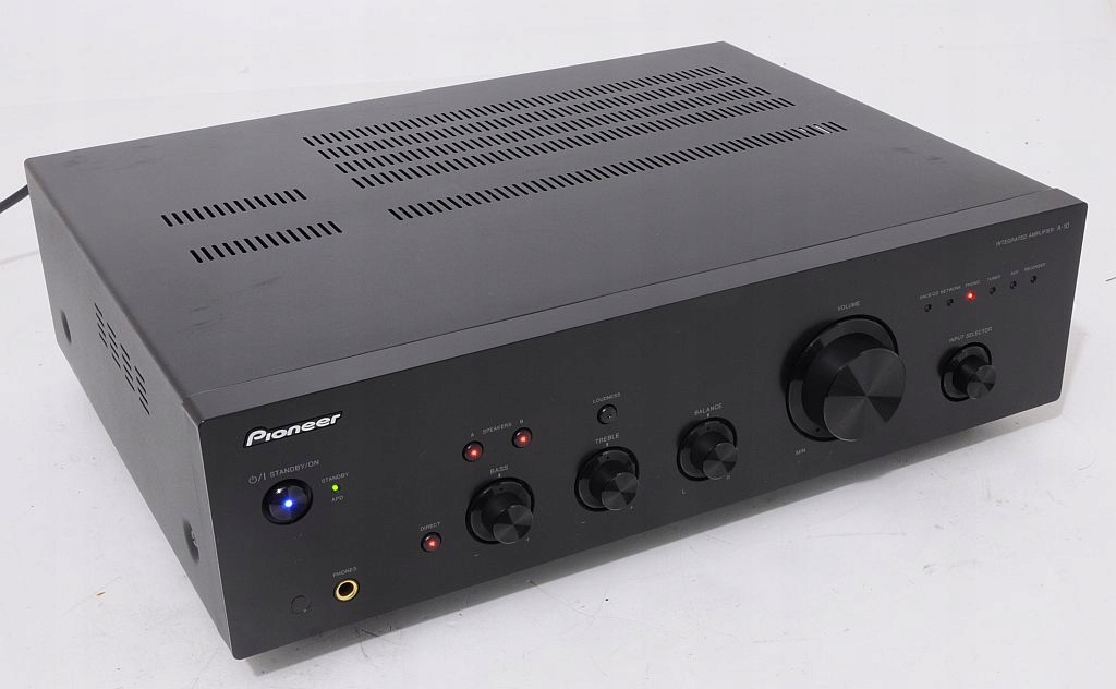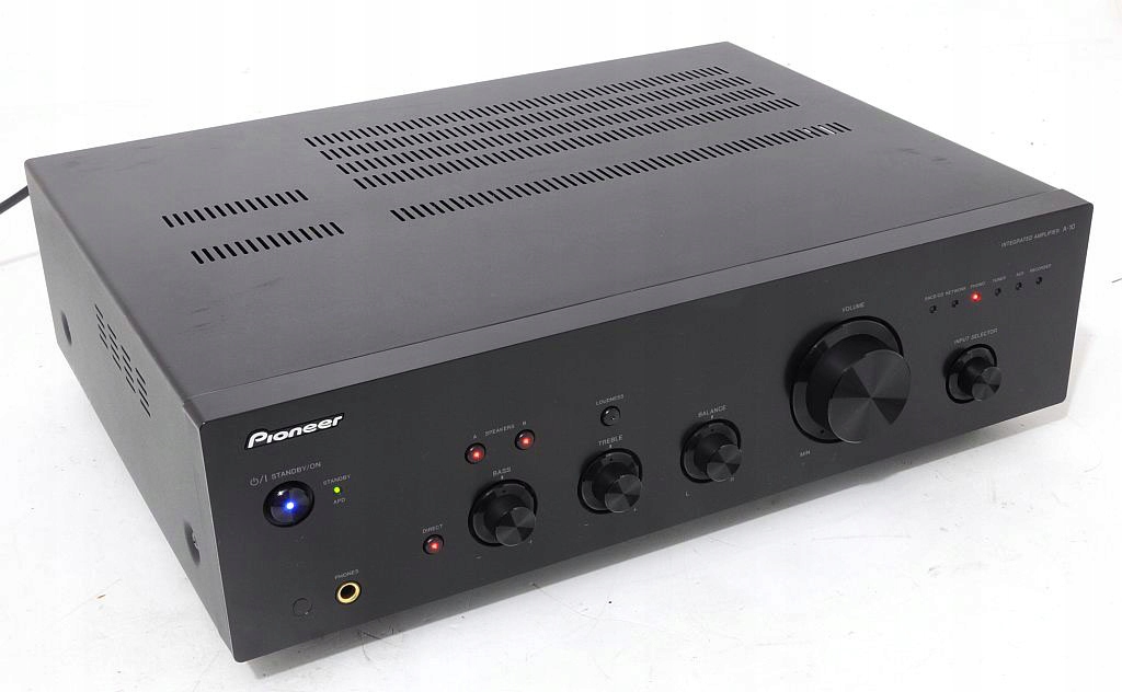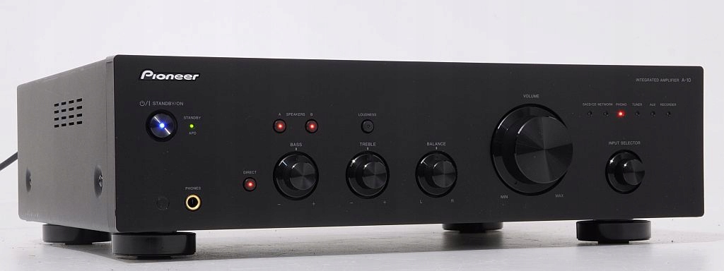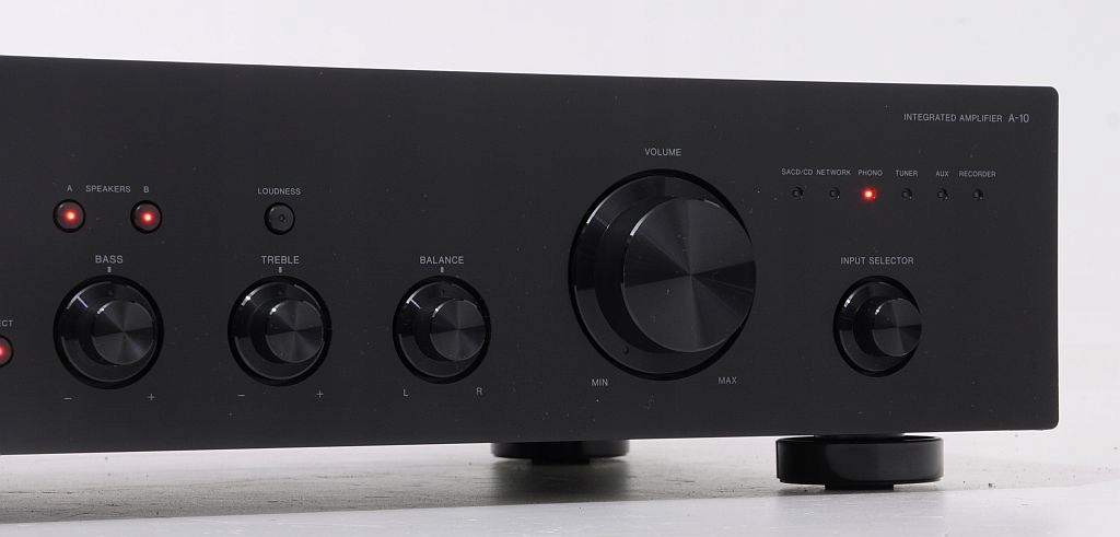 Rok produkcji 2013.Wzmacniacz A-10 Direct Energy Design z symetryczną konstrukcją oferuje wiodącą w klasie wysoką jakość opakowaną w techniczną elegancję. Polerowany panel frontowy ze szczotkowanego aluminium zawiera oprócz pokrętła regulacji głośności pokrętła regulacji niskich i wysokich tonów oraz zrównoważenia brzmienia między lewym, a prawym głośnikiem oraz pokrętło wyboru wejścia źródłowego.