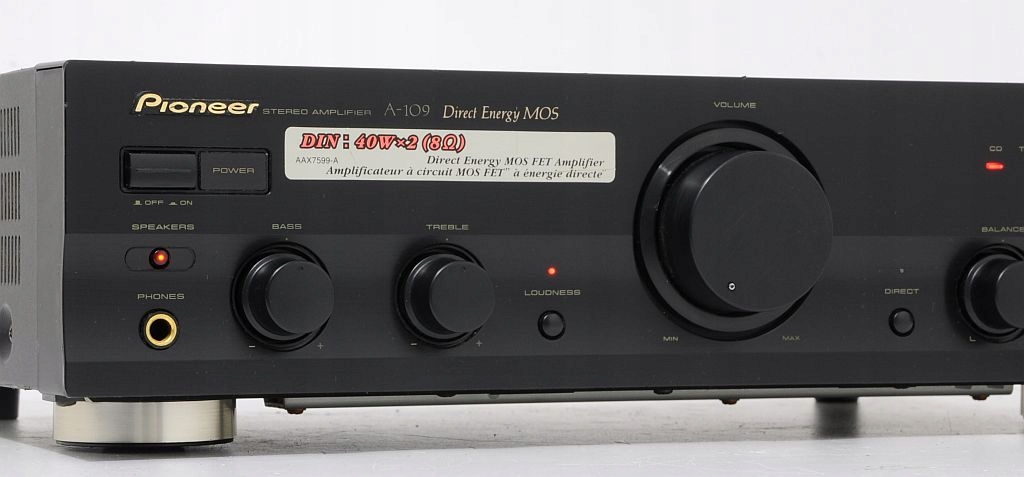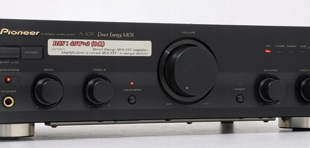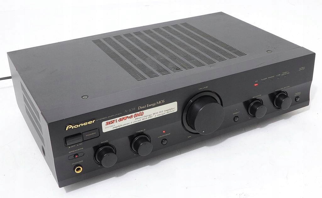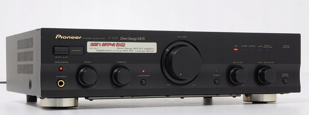 A-109 - jeden z podstawowych modeli wzmacniacza Pioneer`a, ale jak każdy element z tych lat (początek lat 90) gra jak przystało na Pionner`a, ma bardzo ciepłą charakterystykę i z pewnością zadowoli niejednego użytkownika. Prostota obsługi, skromne wymiary plus świetne brzmienie to tyle pokrótce o tym urządzeniu. Zapewniam, że ten wzmacniacz gra na bank lepiej niż nowe wzmacniacze dostępne w sklepach. Każdego niedowiarka zapraszam na odsłuch. Jeżeli ktoś nie wierzy można skonfrontować urządzenia.