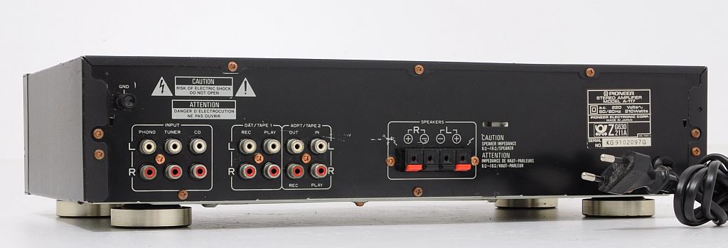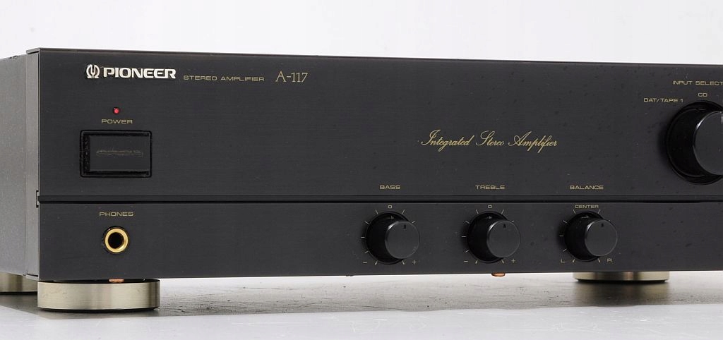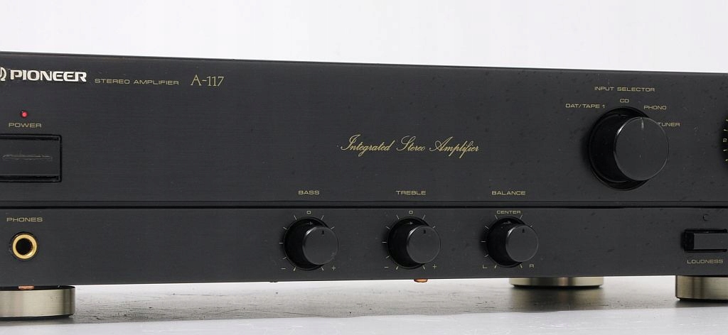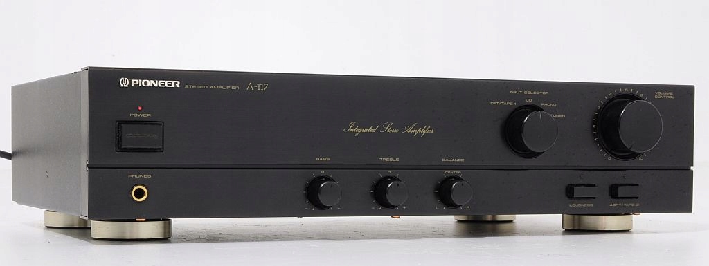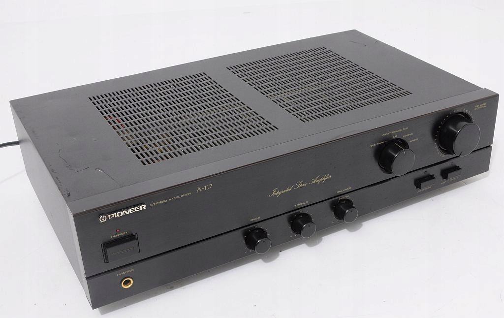 A-117 - jeden z podstawowych modeli wzmacniacza Pioneer`a, ale jak każdy element z tych lat (początek lat 90) gra jak przystało na Pionner`a, ma bardzo ciepłą charakterystykę i z pewnością zadowoli niejednego użytkownika. Prostota obsługi, skromne wymiary plus świetne brzmienie to tyle pokrótce o tym urządzeniu. Zostało wyprodukowane w macierzystych zakładach w Japonii, więc o solidność / trwałość jak i o dobór wysokiej klasy komponentów użytych do produkcji możemy być spokojni. Zapewniam, że ten wzmacniacz gra na bank lepiej niż nowe wzmacniacze dostępne w sklepach. Każdego niedowiarka zapraszam na odsłuch. Jeżeli ktoś nie wierzy można skonfrontować urządzenia.