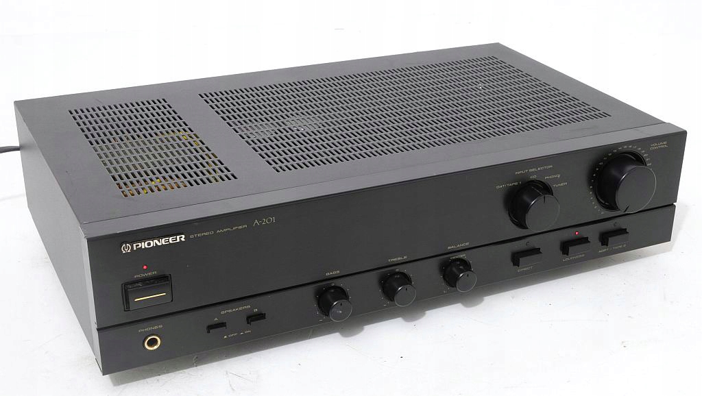 A-201 - jeden z podstawowych modeli wzmacniacza Pioneer`a, ale jak każdy element z tych lat (początek lat 90) gra jak przystało na Pionner`a, ma bardzo ciepłą charakterystykę i z pewnością zadowoli niejednego użytkownika. Prostota obsługi, skromne wymiary plus świetne brzmienie to tyle pokrótce o tym urządzeniu. Zostało wyprodukowane w macierzystych zakładach w Japonii, więc o solidność / trwałość jak i o dobór wysokiej klasy komponentów użytych do produkcji możemy być spokojni. Zapewniam, że ten wzmacniacz gra na bank lepiej niż nowe wzmacniacze dostępne w sklepach. Każdego niedowiarka zapraszam na odsłuch. Jeżeli ktoś nie wierzy można skonfrontować urządzenia.