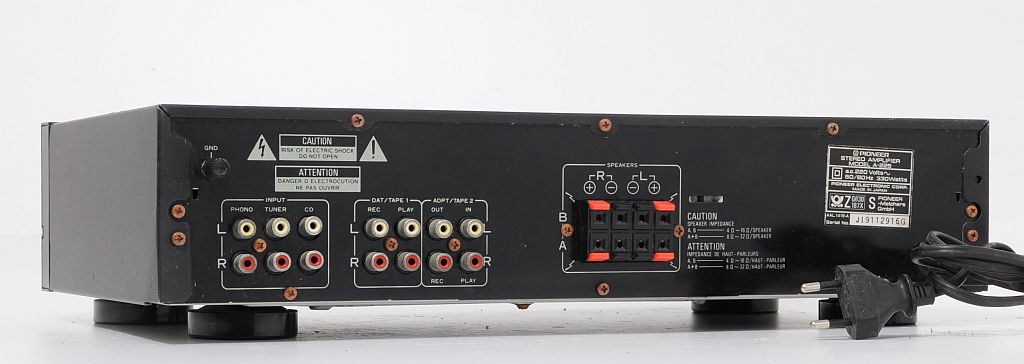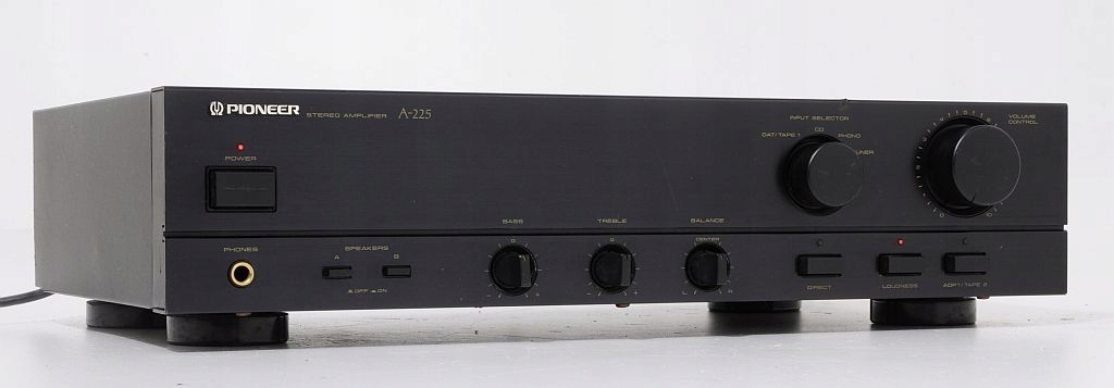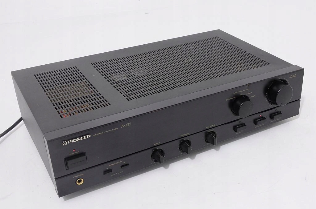 A-225 - jeden z podstawowych modeli wzmacniacza Pioneer`a, ale jak każdy element z tych lat (początek lat 90) gra jak przystało na Pionner`a, ma bardzo ciepłą charakterystykę i z pewnością zadowoli niejednego użytkownika. Prostota obsługi, skromne wymiary plus świetne brzmienie to tyle pokrótce o tym urządzeniu. Zostało wyprodukowane w macierzystych zakładach w Japonii, więc o solidność / trwałość jak i o dobór wysokiej klasy komponentów użytych do produkcji możemy być spokojni. Zapewniam, że ten wzmacniacz gra na bank lepiej niż nowe wzmacniacze dostępne w sklepach. Każdego niedowiarka zapraszam na odsłuch. Jeżeli ktoś nie wierzy można skonfrontować urządzenia.