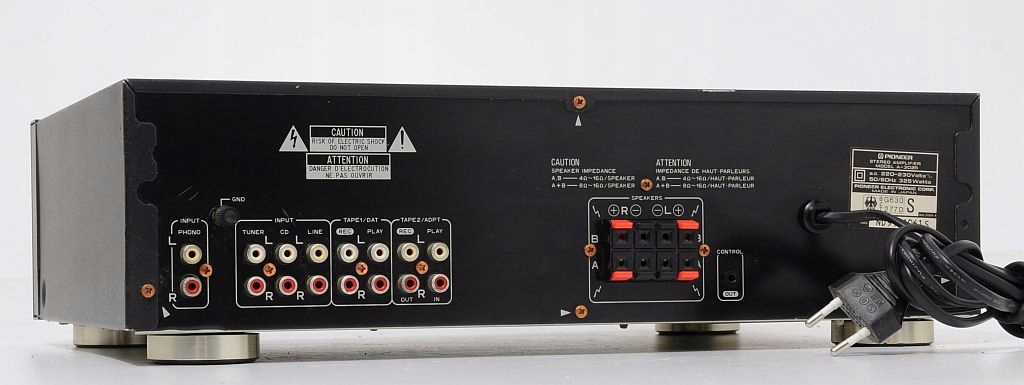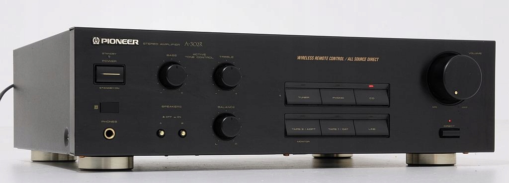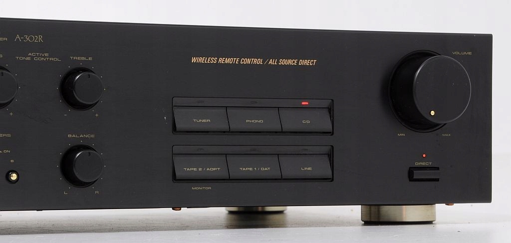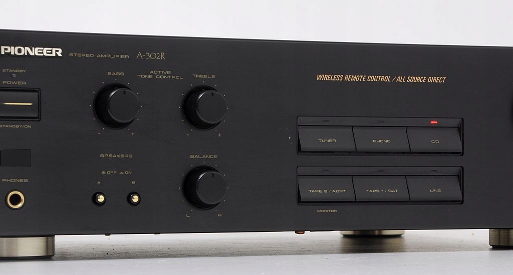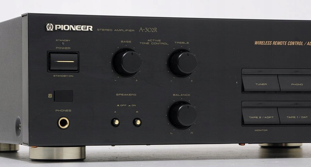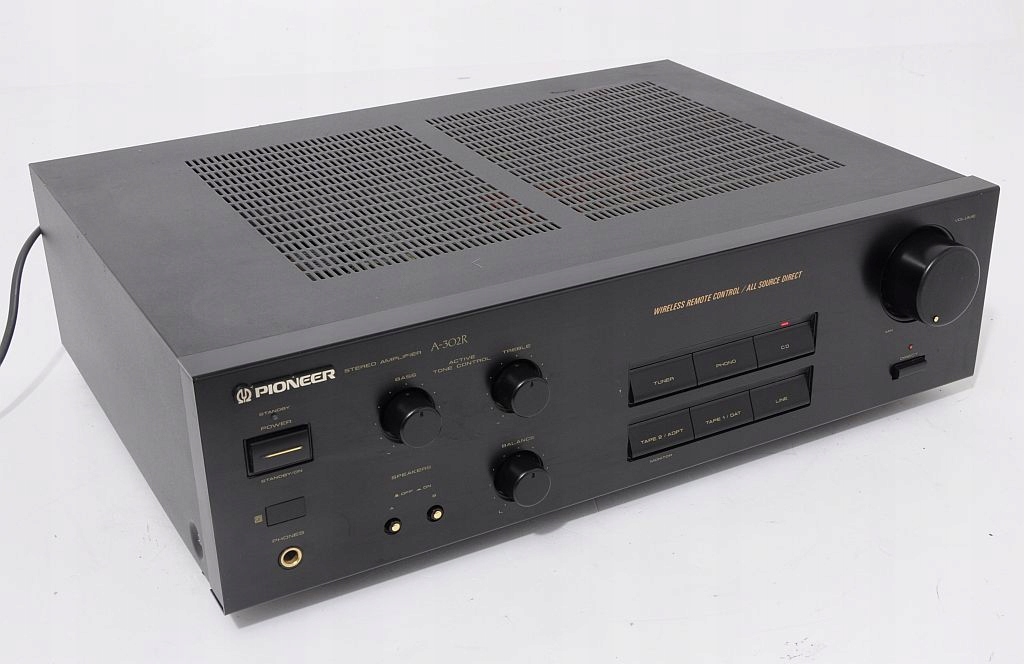 Przedmiotem aukcji jest wysokiej klasy wzmacniacz znanej i cenionej firmy Pioneer. Już na pierwszy rzut oka widać, ze sprzęt jest solidnie zbudowany i posiada przyjemny dla oka design. Jeszcze bardziej zaskakuje wnętrze... We wzmacniaczu zastosowano duże trafo i solidne kondensatory filtrujące. Wzmacniacz dysponuje mocą 2 x 50 W , przy czym warto dodać, że jest "prawdziwa" moc, a nie wyssana z palca moc muzyczna. Po podłączeniu i chwili odsłuchu, okazuje się, że parametry rzeczywiście znajdują przełożenie w tym, co wydobywa się z kolumn. Dźwięk jest bogaty, szczegółowy i dynamiczny. U Pioneera nigdy nie brakowało głębokiego i dobrze kontrolowanego bassu. Na panelu zainstalowano potencjometry (BASS, TREBLE) więc barwę można dostosować do upodobań. W razie potrzeby funkcja Direct pozwoli ominąć sekcję korektora. Wzmacniacz bardzo dobrze wyposażony - możliwość jednoczesnego podłączenia aż 6 urządzeń wejściowych. Podsumowując, Pioneer A-302R to model z nowszej linii Pioneera i zarazem jedna z najlepszych propozycji w tym przedziale cenowym. Będzie doskonałą podstawą dobrego systemu HiFi.