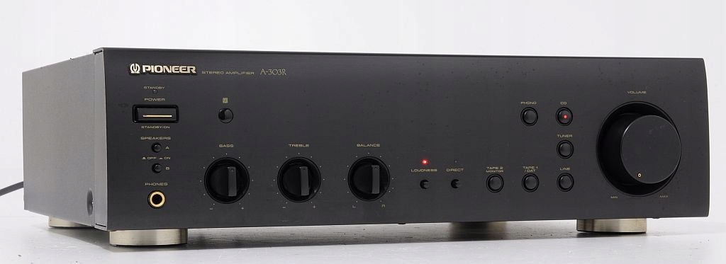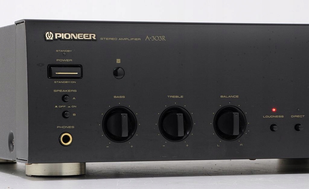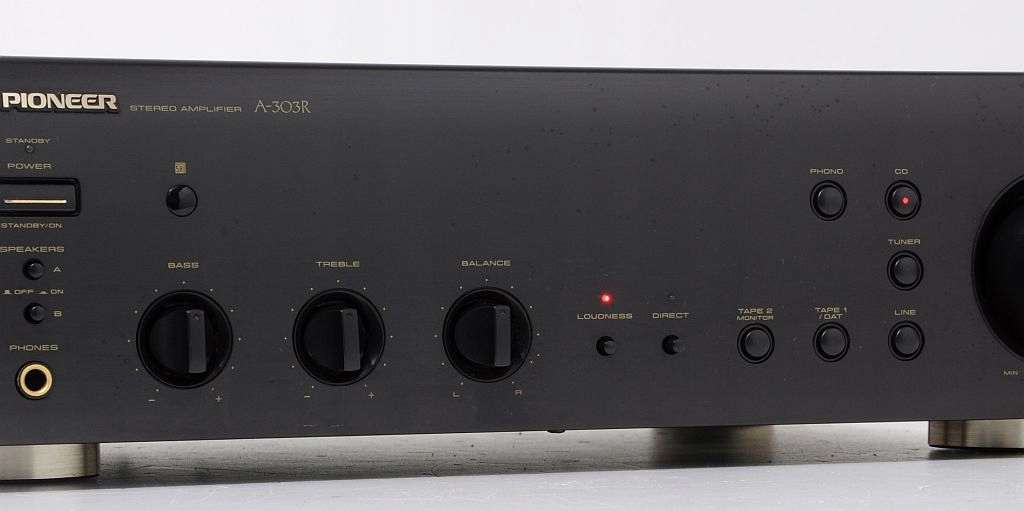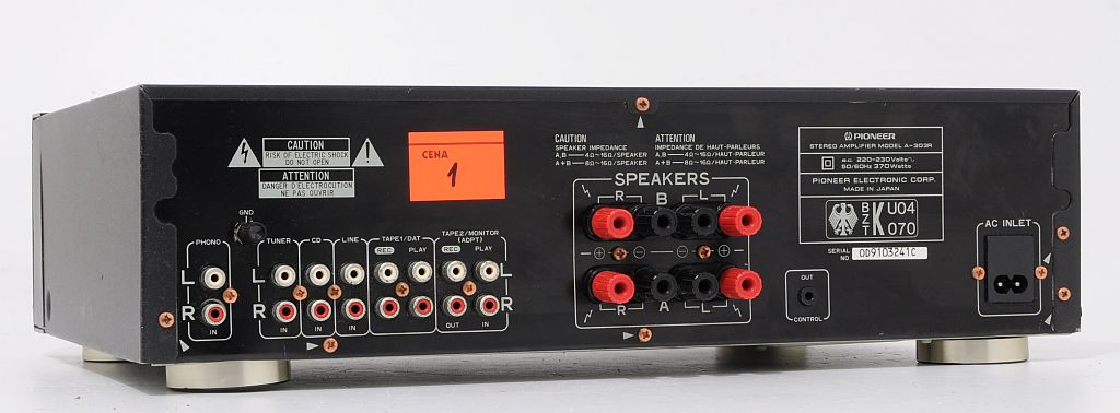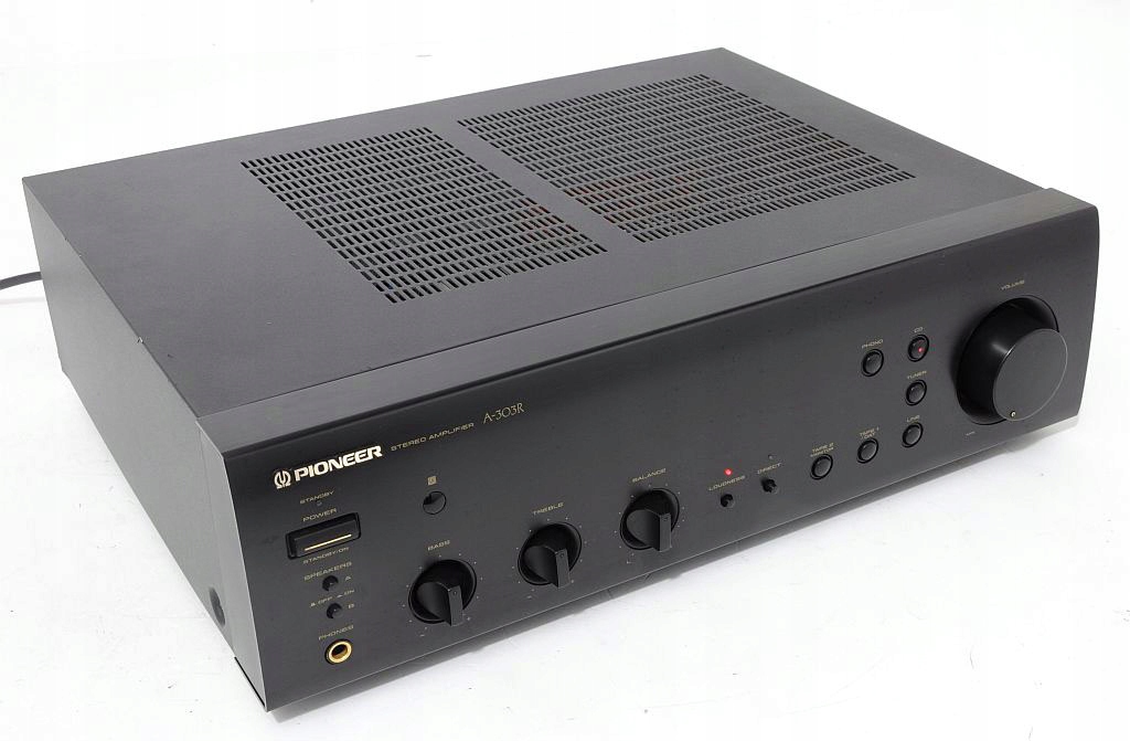 Przedmiotem aukcji jest wysokiej klasy wzmacniacz znanej i cenionej firmy Pioneer. Już na pierwszy rzut oka widać, ze sprzęt jest solidnie zbudowany i posiada przyjemny dla oka design. Jeszcze bardziej zaskakuje wnętrze... We wzmacniaczu zastosowano duże trafo i solidne kondensatory filtrujące. Po podłączeniu i chwili odsłuchu, okazuje się, że parametry rzeczywiście znajdują przełożenie w tym, co wydobywa się z kolumn. Dźwięk jest bogaty, szczegółowy i dynamiczny. U Pioneera nigdy nie brakowało głębokiego i dobrze kontrolowanego bassu. Na panelu zainstalowano potencjometry (BASS, TREBLE) więc barwę można dostosować do upodobań. Dodatkowe podbicie Loudness znajdzie zastosowanie przy kolumnach z dobrymi głośnikami basowymi, a w razie potrzeby funkcja Direct pozwoli ominąć sekcję korektora. Wzmacniacz bardzo dobrze wyposażony - możliwość jednoczesnego podłączenia aż 6 urządzeń wejściowych. Podsumowując, Pioneer A-303R to model z nowszej linii Pioneera i zarazem jedna z najlepszych propozycji w tym przedziale cenowym. Będzie doskonałą podstawą dobrego systemu HiFi.