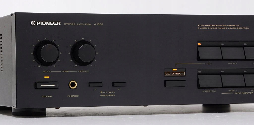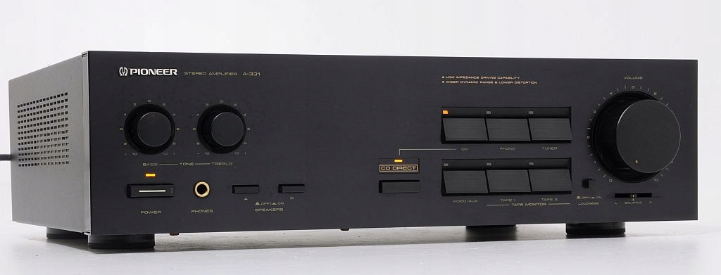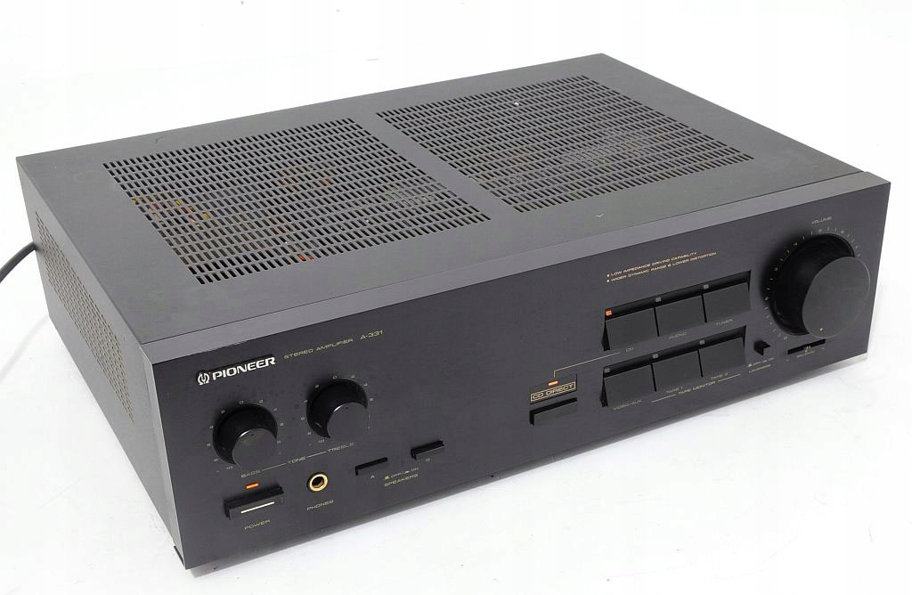 Oferowane urządzenie to znany z półek sklepowych PIONEER A-331. Obiektywnie oceniając A-331 to bardzo solidne urządzenie , gdzie o kiczu można zapomnieć, wewnątrz końcówka zrealizowana klasycznie na tranzystorach, solidne trafo oraz elektrolity o słusznej pojemności. Kultura pracy wzmacniacza zapewniona.