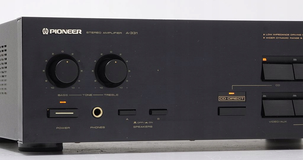 Oferowane urządzenie to znany z półek sklepowych PIONEER A-331. Obiektywnie oceniając A-331 to bardzo solidne urządzenie , gdzie o kiczu można zapomnieć, wewnątrz końcówka zrealizowana klasycznie na tranzystorach, solidne trafo oraz elektrolity o słusznej pojemności. Kultura pracy wzmacniacza zapewniona.