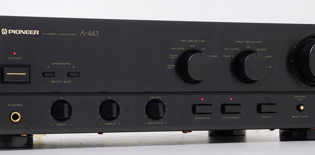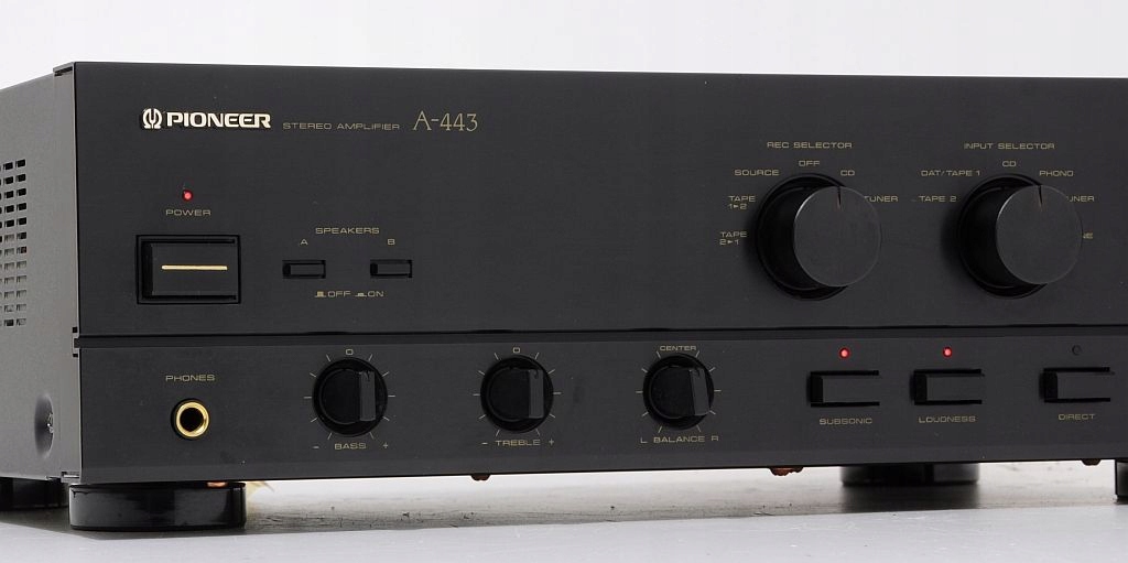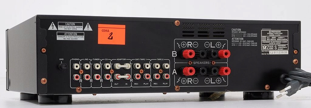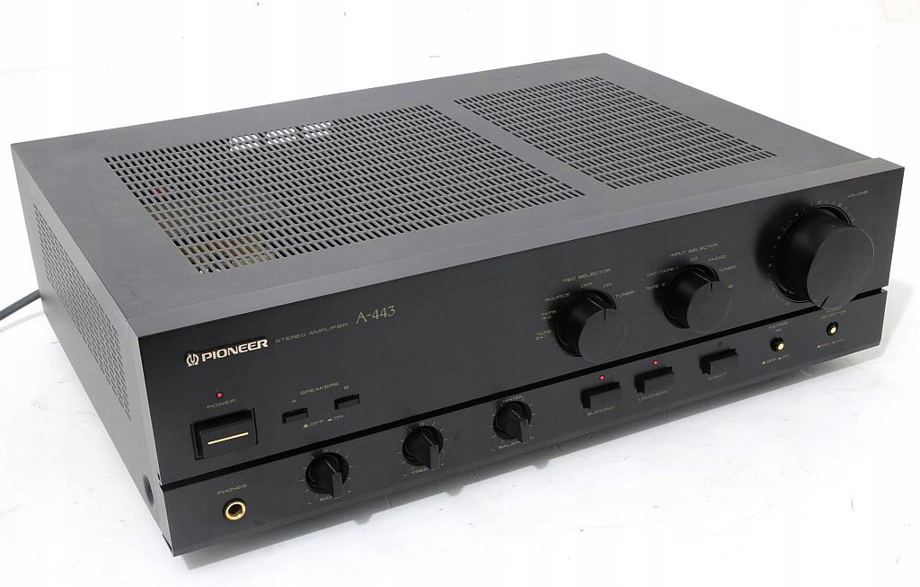 Oferowane urządzenie to znany z dawnych półek sklepowych Pioneer A-44 to tzw. średnia klasa budżetowa, łącząca w sobie doskonałe parametry i solidność wykonania. Budowa wzmacniacza – oparta na tranzystorach, kondensatorach ELNA, potencjometrach ALPS, całość zasilana solidnym transformatorem (Bando). Oferowany A-44 pochodzi z macierzystych zakładów w Japonii, czołówka wykonana z aluminium. Wzmacniacz nie był katowany, nie ma za sobą ciężkich przeżyć co z pewnością przyszły nabywca usłyszy i zobaczy. Zachęcam do zakupu, maszyna pochodzi z porządnej linii, ogólnie wiadomo - „kanciaki” najlepsze (nie tylko w przypadku marki Pioneer:)