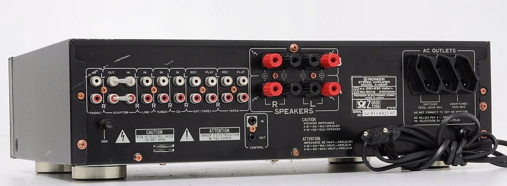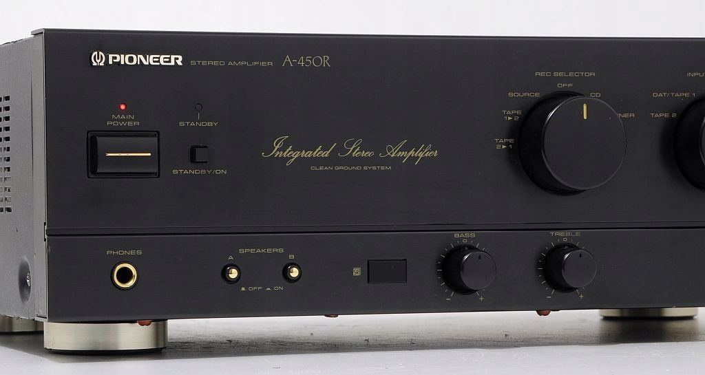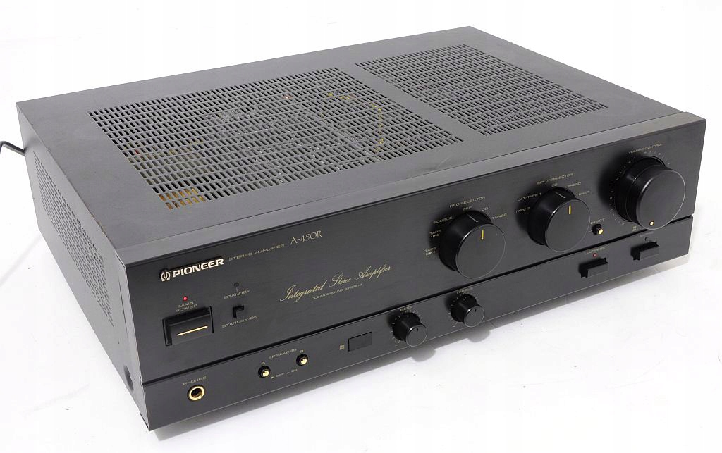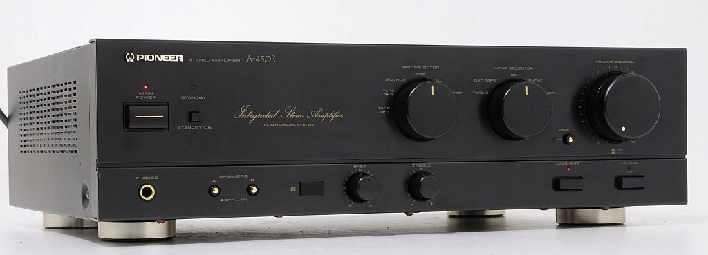 Zintegrowany wzmacniacz z początku lat dziewięćdziesiątych. W drabince modeli zajmuje miejsce w środku stawki, jednak osiągami, wykonaniem i komponentami zastosowanymi w środku bliżej mu do serii Reference niż do modeli niżej. Różnica w odsłuchu 450R z przedstawicielem serii 600, niemalże nie wyczuwalna. Wewnątrz końcówka zrealizowana klasycznie na 4 (2 na kanał) tranzystorach Toshiba (odprowadzanie ciepła spoczywa na „kaloryferze” z ciśnieniowo wykonanego stopu aluminium, kształt – plaster miodu), bardzo solidne trafo (Bando) oraz elektrolity - nichicon. Urządzenie pochodzi z macierzystych zakładów w Japonii. Dźwięk jak w starych, poczciwych Pioneer’ach, reklamować nie trzeba, wypada tylko polecić. Urządzenie bardzo funkcjonalne: 3 gniazda AC na tylniej ściance + spora ilość wejść + pętla umożliwiająca podpięcie korektora graficznego (dzięki temu korekcji poddawane będą wszystkie źródła podpięte do wzmacniacza). Na przednim panelu panuje ład i porządek, brak wszelkiego rodzaju filtrów, których i tak nie używamy. Od strony technicznej – przedmiot bez napraw, pełen oryginał. Jak zawsze w przypadku odbioru osobistego można samemu dokonać stosownej „inspekcji”!