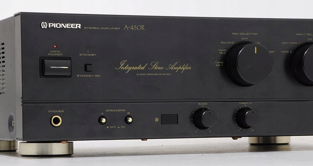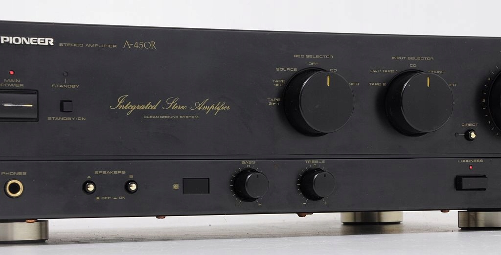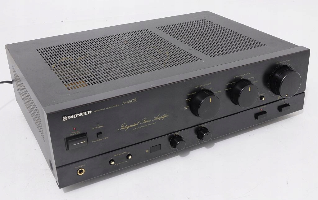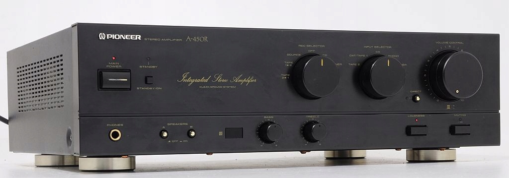 Zintegrowany wzmacniacz z początku lat dziewięćdziesiątych. W drabince modeli zajmuje miejsce w środku stawki, jednak osiągami, wykonaniem i komponentami zastosowanymi w środku bliżej mu do serii Reference niż do modeli niżej. Różnica w odsłuchu 450R z przedstawicielem serii 600, niemalże nie wyczuwalna. Wewnątrz końcówka zrealizowana klasycznie na 4 (2 na kanał) tranzystorach Toshiba (odprowadzanie ciepła spoczywa na „kaloryferze” z ciśnieniowo wykonanego stopu aluminium, kształt – plaster miodu), bardzo solidne trafo (Bando) oraz elektrolity - nichicon. Urządzenie pochodzi z macierzystych zakładów w Japonii. Dźwięk jak w starych, poczciwych Pioneer’ach, reklamować nie trzeba, wypada tylko polecić. Urządzenie bardzo funkcjonalne: 3 gniazda AC na tylniej ściance + spora ilość wejść + pętla umożliwiająca podpięcie korektora graficznego (dzięki temu korekcji poddawane będą wszystkie źródła podpięte do wzmacniacza). Na przednim panelu panuje ład i porządek, brak wszelkiego rodzaju filtrów, których i tak nie używamy. Od strony technicznej – przedmiot bez napraw, pełen oryginał. Jak zawsze w przypadku odbioru osobistego można samemu dokonać stosownej „inspekcji”!