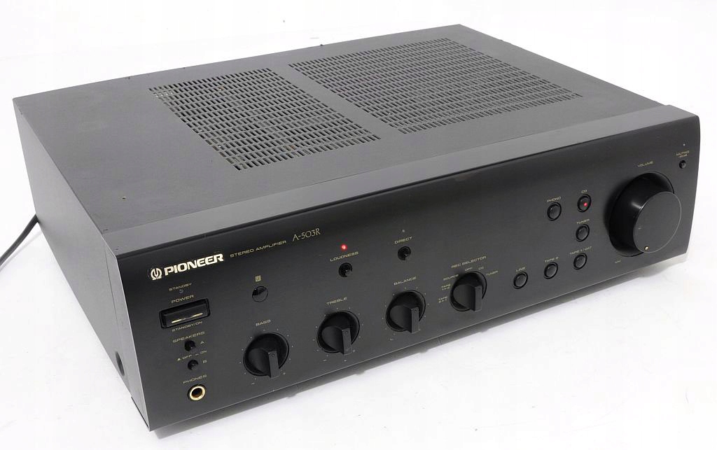 Zintegrowany wzmacniacz z początku lat dziewięćdziesiątych. W drabince modeli zajmuje miejsce w środku stawki, jednak osiągami, wykonaniem i komponentami zastosowanymi w środku bliżej mu do serii Reference niż do modeli niżej. Różnica w odsłuchu 503R z przedstawicielem serii 600, niemalże nie wyczuwalna. Wewnątrz końcówka zrealizowana klasycznie na 4 (2 na kanał) tranzystorach Toshiba (odprowadzanie ciepła spoczywa na „kaloryferze” z ciśnieniowo wykonanego stopu aluminium, kształt – plaster miodu), bardzo solidne trafo (Bando) oraz elektrolity - nichicon. Urządzenie pochodzi z macierzystych zakładów w Japonii. Dźwięk jak w starych, poczciwych Pioneer’ach, reklamować nie trzeba, wypada tylko polecić. Urządzenie bardzo funkcjonalne: 3 gniazda AC na tylniej ściance + spora ilość wejść + pętla umożliwiająca podpięcie korektora graficznego (dzięki temu korekcji poddawane będą wszystkie źródła podpięte do wzmacniacza). Na przednim panelu panuje ład i porządek, brak wszelkiego rodzaju filtrów, których i tak nie używamy. Od strony technicznej – przedmiot bez napraw, pełen oryginał. Jak zawsze w przypadku odbioru osobistego można samemu dokonać stosownej „inspekcji”!