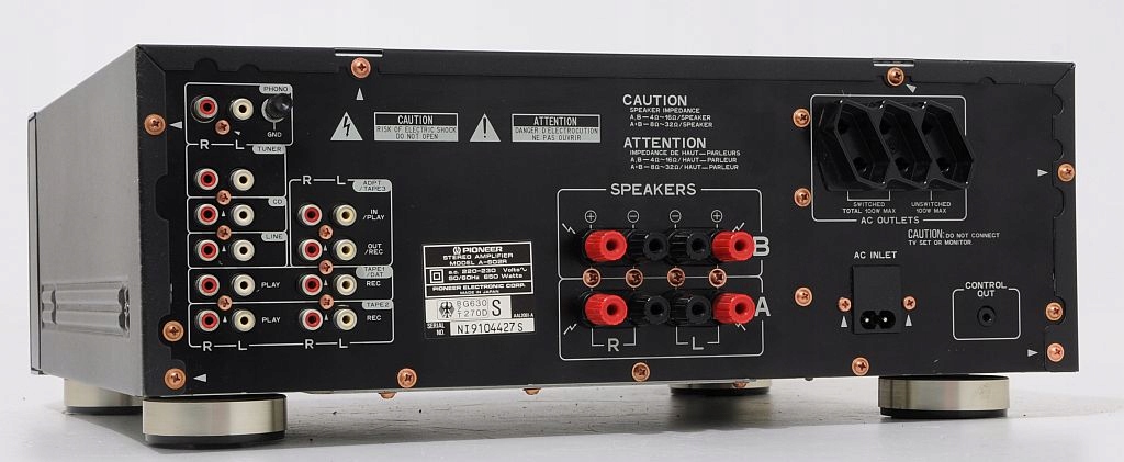 A-602 ma trzy wejścia liniowe, jedno gramofonowe o zmiennej czułości (MM/MC) i gniazda dla dwóch magnetofonów. Osobne pokrętło służy do wyboru wejść do odsłuchu, a osobne do nagrywania. Można też dokonywać kopiowania pomiędzy magnetofonami w obu kierunkach. Jest też przycisk mute do skokowego ściszenia dźwięku o 20 dB i pokrętło balansu. Wzmacniacz ma dwa komplety gniazd do podłączenia kolumn. Można je dowolnie odłączać przyciskami na przedniej ściance, co pozwala na przykład na odcięcie kolumn przy korzystaniu ze słuchawek. Na tylnej ściance są też trzy gniazda sieciowe, w tym dwa odłączane wraz ze wzmacniaczem. Jest też gniazdo do połączenia z innymi urządzeniami Pioneera w celu wspólnego sterowania. Dla słuchaczy bardziej purystycznych służy przycisk direct. Odcina on wszelkie regulatory barwy, kontur, pokrętło balansu i wyjścia magnetofonowe i w sposób optymalny przekazuje sygnał.