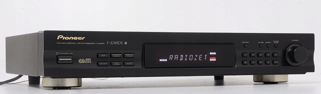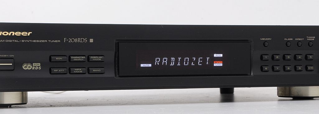 Świetny tuner F-208RDS cenionej firmy Pioneer, jest to ostatni model tego producenta z funkcją RDS. Charakteryzuje się bardzo ładnym wyglądem, pasującym do pozostałych klocków tej firmy zarówno do nowszej jak i starszej linii tej firmy. O wysokiej klasie tunera świadczy że na kawałku drucika odbiera czysto w stereo nawet słabe stacje, jest łatwy w obsłudze. Dźwięk stoi na wysokim poziomie dzięki wykorzystaniu filtra MPIX i kwarcowej syntezy PLL. Wyświetlacz świeci bardzo wyraziście.