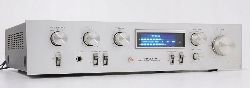 Do zaoferowania mam potężny i przepiękny wzmacniacz zintegrowany Pioneera. Jest to jeden z najbardziej udanych modeli tej firmy. Naprawdę ciężko znaleźć coś co zagra równie pięknie i będzie tak solidnie zbudowane, a jeśli dorzucimy do tego fakt że wzmacniacz jest w wersji silver to jest to prawdziwa okazja. Takich wzmacniaczy już się nie produkuje, panel przedni z grubego polerowanego aluminium, gałeczki grawerowane. Dźwięk jest ciepły, bardzo poukładany, oparty na przepięknym naprawdę nisko schodzącym basie.