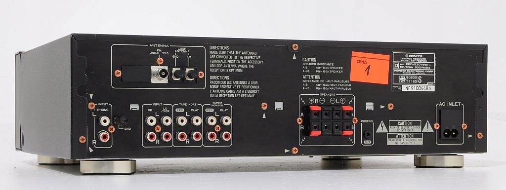 Amplituner firmy Pioneer, przeznaczony do odsłuchu w trybie stereo, posiadający na pokładzie wszelkie niezbędne opcje, urządzenie bardzo funkcjonalne. Jest to najwyższy model serii, bardzo rozbudowany. Wzorowa konstrukcja i wykonanie. Dźwięk na najwyższym pułapie. Amplituner w pełni sprawy (bez napraw, oryginał), sekcja wzmacniacza jak i tunera pracuje bez żadnych uwag. Tuner testowany na antenie pokojowej z zasilaczem (z allegro za 50-60zł) dawał radę. Poza gramofonem do oferowanej tu maszyny można podpiąć 4 dodatkowe źródła dźwięku, podłączenie przykładowo cd, deck`a, komputera oraz dekodera TV cyfrowej nie będzie stanowić żadnego problemu. Funkcja LOUDNESS daje świetny efekt podbicia dźwięku. Zamieszczone zdjęcia ukazują dokładnie ten egzemplarz, który jest przedmiotem aukcji, można dokonać samooceny.