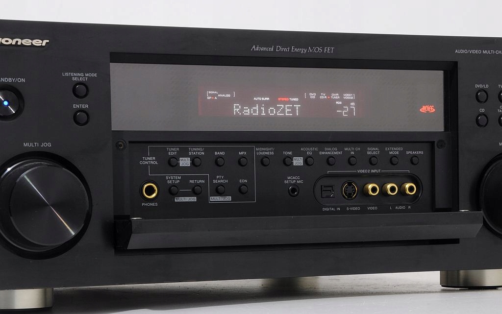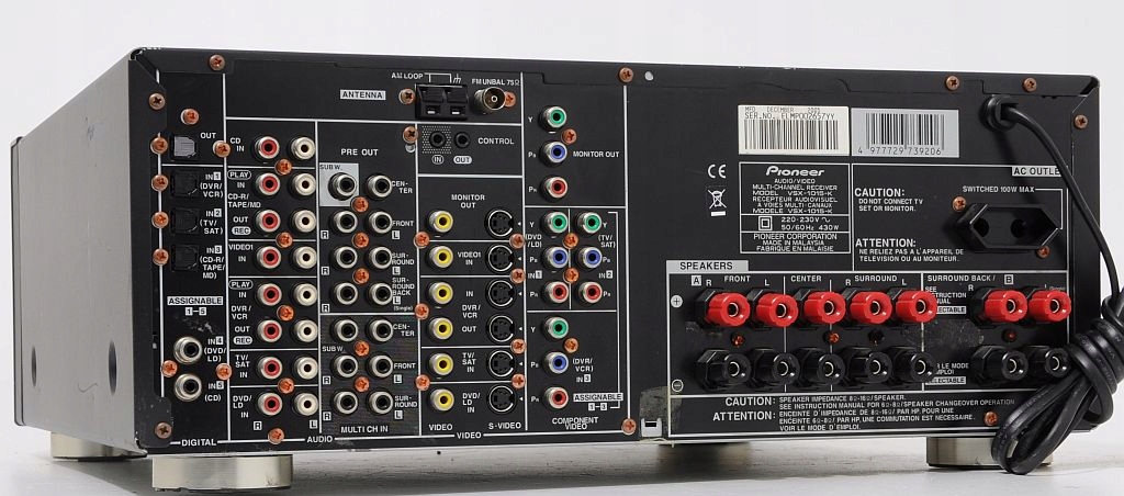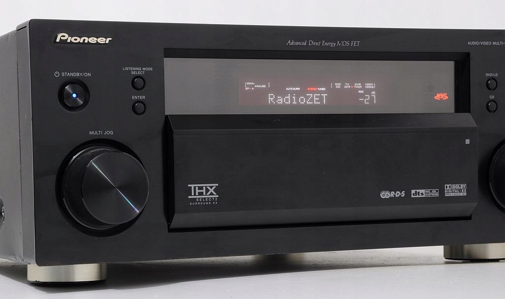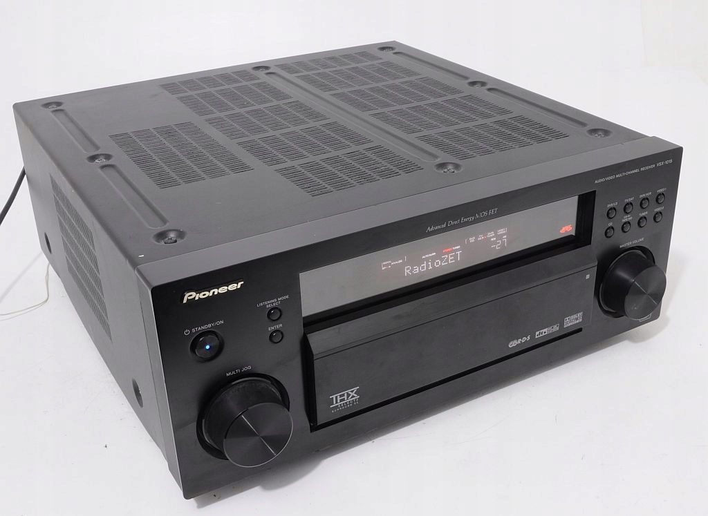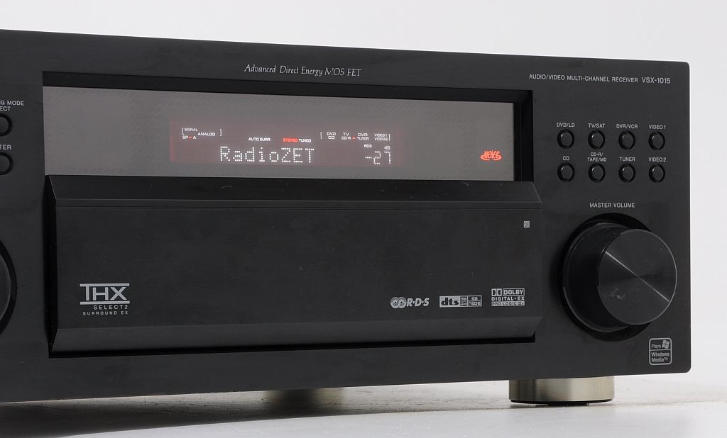 Niesamowity amplituner kina domowego 7.1 firmy Pioneer, model VSX-1015 z najwyższej półki tego producenta. Jest to najlepsza i najpotężniejsza konstrukcja amplitunerów 7.1 dla najbardziej zaawansowanych słuchaczy. Dźwięk który się z niego wydobywa to istna poezja. Najbardziej zaawansowany technicznie amplituner Pioneera'a. Wszystkie najlepsze tryby i dekodery dżwięku, DOLBY PROLOGIC, DOLBY PROLOGIC 2, DTS, DTS ES, STEREO i mnóstwo innych. Wyróżniony certyfikatem THX SELECTION, z całą gamą wejść optycznych, coaxialnych, cyfrowych, component i chinch. Zastosowano w nim wentylator na całe zasilanie mocy co zwiększa jego skuteczność. Jest nieporównywalnie lepszy od całej nowej serii Pioneera. Od pierwszego kontaktu mamy wrażenie obcowanie z ponadprzeciętnym dziełem inżynieryjnym.