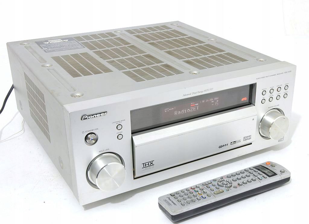Niesamowity amplituner kina domowego 7.1 firmy Pioneer, model VSX-1015 z najwyższej półki tego producenta. Jest to najlepsza i najpotężniejsza konstrukcja amplitunerów 7.1 dla najbardziej zaawansowanych słuchaczy. Dźwięk który się z niego wydobywa to istna poezja. Najbardziej zaawansowany technicznie amplituner Pioneera'a. Wszystkie najlepsze tryby i dekodery dżwięku, DOLBY PROLOGIC, DOLBY PROLOGIC 2, DTS, DTS ES, STEREO i mnóstwo innych. Wyróżniony certyfikatem THX SELECTION, z całą gamą wejść optycznych, coaxialnych, cyfrowych, component i chinch. Zastosowano w nim wentylator na całe zasilanie mocy co zwiększa jego skuteczność. Jest nieporównywalnie lepszy od całej nowej serii Pioneera. Od pierwszego kontaktu mamy wrażenie obcowanie z ponadprzeciętnym dziełem inżynieryjnym.