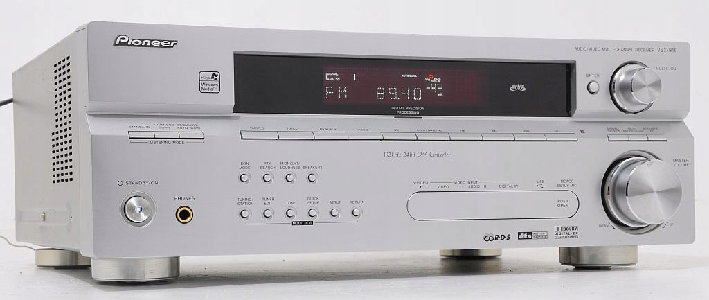 Mamy do zaoferowania jeden z lepszych amplitunerów kina domowego jakie Pioneer wypuścił na rynek. Jest to doskonały sprzęt do odsłuchu stereo jak i do dźwięku przestrzennego. Na pochwałę zasługuje nowoczesny kształt i wygląd. Dźwięk charakteryzuje się pięknym brzmieniem i dużą dynamiką. Podczas oglądania filmów najnowsze dekodery DOLBY DIGITAL I DTS przeniosą Cię w same centrum akcji. W trybie stereo VSX-916 także nie ma się czego wstydzić. Urządzenie jest wyposażone w gniazdo USB. W trybie Bi-Amp , terminale przednich i tylnych głośników surround można wykorzystać do zasilenia głośników przednich, zapewniając lepsze odwzorowanie sceny dźwiękowej. 5-pasmowy system MCACC umożliwia profesjonalną optymalizację dźwięku na poziomie studyjnym. VSX-916-K wyposażono w terminale video typu component (3 we / 1 wy), obsługujących sygnały źródłowe wysokiej rozdzielczości i progresywnie skanowane.