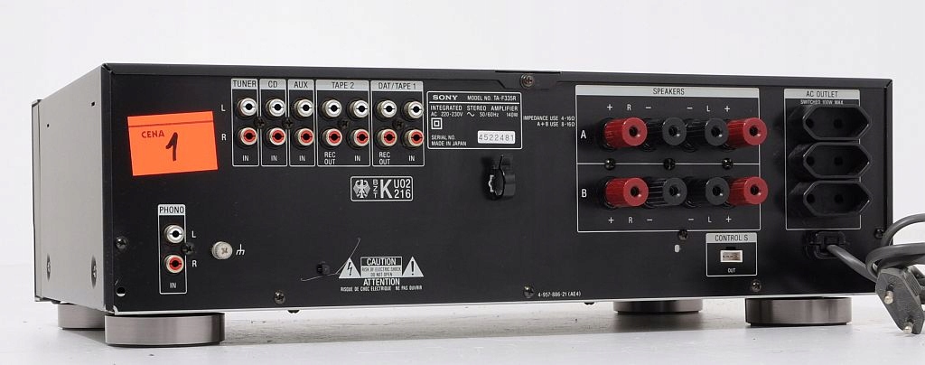 Przedstawiciel ostatniej porządnej linii Sony, potem nastała „era” plastików i układów STK… Oferowane urządzenie oferuje klasyczna konstrukcję opartą na solidnym transformatorze, końcówka mocy na tranzystorach załączana przekaźnikiem, kondensatory o słusznej pojemności, potencjometry Alps, to musi grać, to musi być niezawodne – i tak też jest w tym wypadku, urządzenie w 100% sprawne, bez napraw, na oryginalnych podzespołach. Uniwersalny design pozwala dokompletować „klocki” z szerokiego zakresu produktów wypuszczanych przez Sony na przekroju wielu lat. Urządzenie zostało wyprodukowane w macierzystych zakładach w Japonii, czołówka wykonana oczywiście z aluminium.