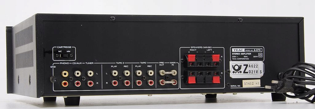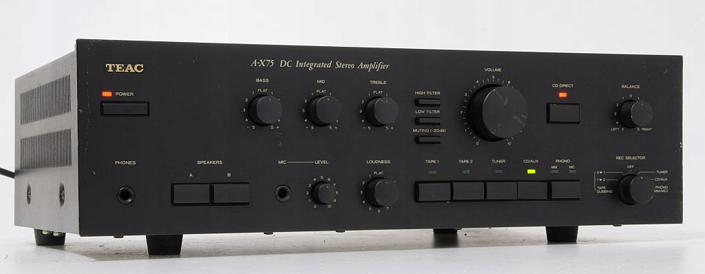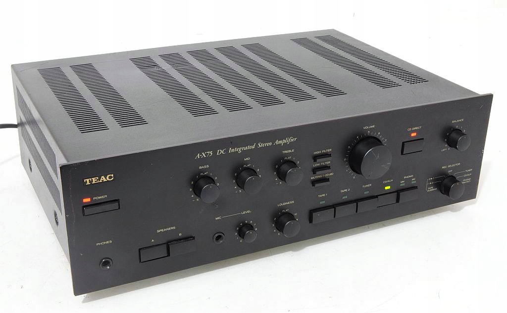 TEAC A-X75 to znakomity wzmacniacz zintegrowany audio-video z drugiej połowy lat 80., zaprojektowany w okresie, gdy japońscy producenci hi-fi stawiali na najwyższą jakość wykonania i dźwięku. To model, który łączy w sobie solidność konstrukcji, wysoką moc wyjściową i muzykalne brzmienie – cenione do dziś przez miłośników klasycznego sprzętu stereo.
