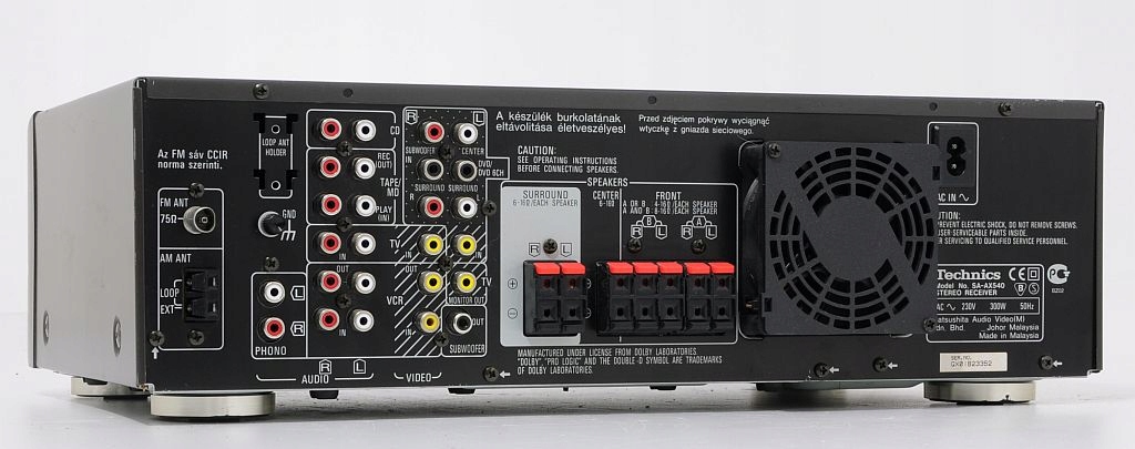 Solidny amplituner firmy Technics. Wyposażony w systemy Dolby Pro Logic Surround: tryby odtwarzania kanału środkowego, włączenie, wyłączenie kanałów surround, regulacje kanałów surround i kanału środkowego, ale dzięki wejściu 6cio kanałowemu chinch możemy podpiąć DVD z najnowszymi systemami i tak zdekodowany dźwięk popłynie na nasze kolumny w kinie domowym. Tryb Dolby 3 Stereo, 70W na kanał wiec wystarcza to do wysterowania nawet dużych kolumn. Jeśli chodzi o dźwięk to mamy to do czego przyzwyczaił nas Technics – czyli świetna czystość z mocnym fundamentem basu. Polecam - satysfakcja gwarantowana.