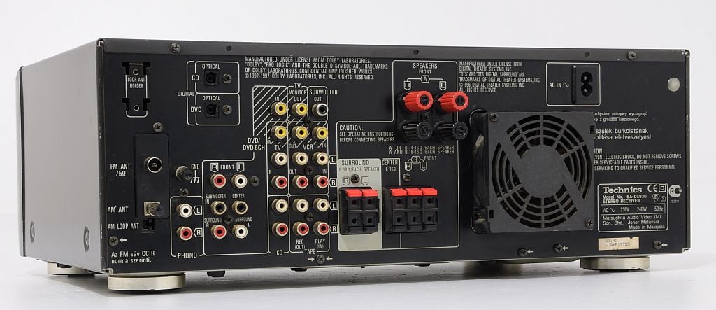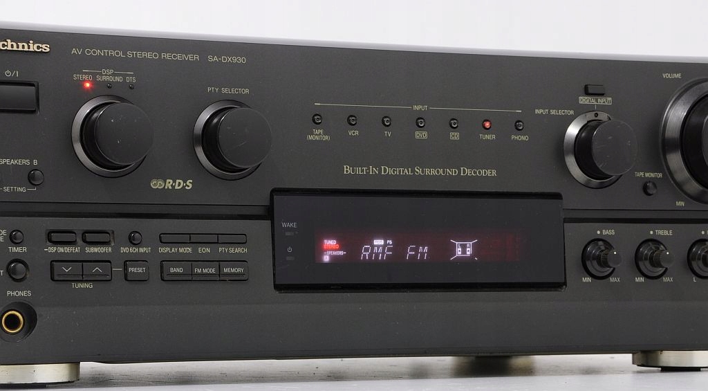 SA-DX930 jest topowym amplitunerem Technicsa. Jest to w sumie jeden z najlepszych modeli tej firmy. Sprzęt wyposażony jest w dekoder Dolby Digital DTS, więc możemy oglądać filmy z najlepszymi efektami dźwiękowymi Jest w bardzo dobrym stanie technicznym. Amplituner zbudowano bardzo solidnie, charakteryzuje sie bardzo mocnym dynamicznym dźwiękiem. Posiada moc 5x100W.