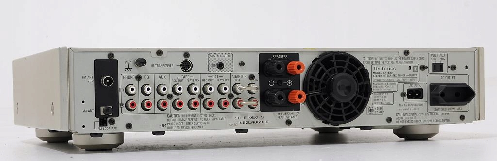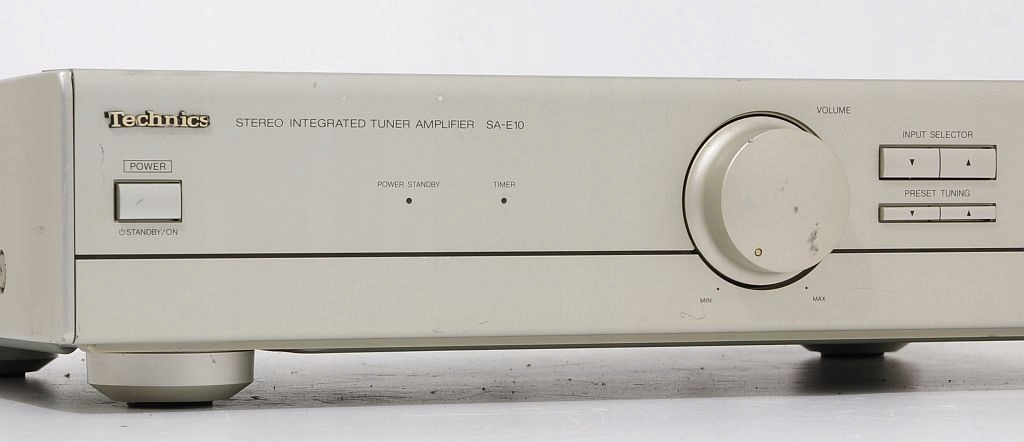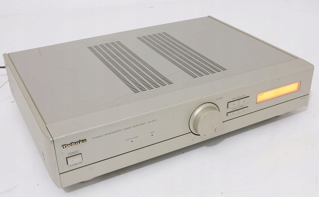 Technics E10 jest urządzeniem pochodzącym z legendarnej serii EXCLUSIVE E10 . Jest to sprzęt o ponadczasowym wyglądzie. Ma nieduże rozmiary wygląda na cienki i smukły, większość funkcji ukryto za klapką , a wewnątrz mamy solidne zasilanie na 2 transformatorach, dwa odseparowane układy co przekłada się na maksymalną redukcję szumów, duże kondensatory i potężna końcówkę mocy( podwójną hybrydę BC MODULE, będącą jednym z największych osiągnięć Technisa w dziedzinie końcówek mocy, układ chłodzony wentylatorem). Amplituner pięknie się prezentuje ale również pięknie gra.