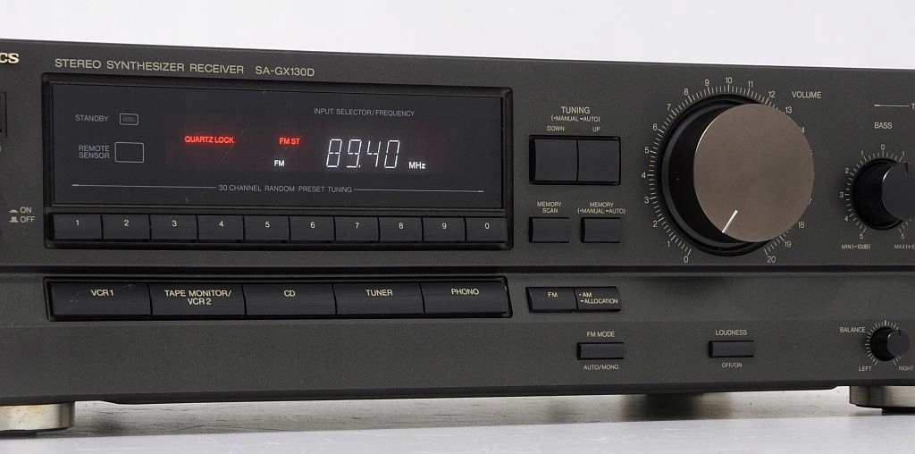 Stary, dobry kanciak Technics`a z czasów kiedy powstawały jedne z najlepszych konstrukcji w historii firmy. Urządzenie bardzo funkcjonale, wyposażone w opcje LOUD`u – nowsze SA-GX oraz SA-EX tak owej opcji nie posiadają, przez co bardzo często ich właściciele zmuszeni są do kupna „wspomagacza” w postaci korektora graficznego :) w przypadku oferowanego na tej aukcji urządzenie to jest do zbyteczne. Urządzenie jest w 100% sprawne, bez napraw. Amplituner nie ma wygórowanych wymagań wobec anteny. Do oferowanego Technics`a możemy podpiąć 4 dodatkowe źródła dźwięku (w tym jedno przeznaczone na gramofon), nie będzie problemu z podłączeniem przykładowo: CD, komputera i dekodera TV cyfrowej (warunek: dekoder musi posiada wyjście audio RCA). Brzmienie dwukrotnie lepsze od dwóch ostatnich, „jałowych” serii Technics`a, zapewniam, że w przypadku SA-GX130 tak jak wyżej już wspomniałem nie ma konieczności dokupywania korektora graficznego.