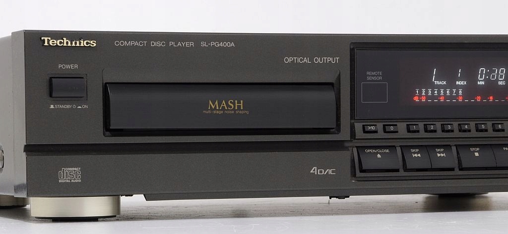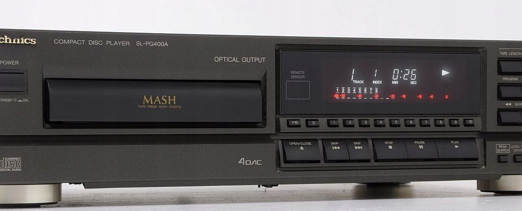 Bardzo dobry model odtwarzacza Technics’a, o wysokiej jakości dźwięku. Odtwarzacz został zbudowany na jedno bitowym przetworniku typu MASH - był on niegdyś stosowany w sprzęcie najwyższej klasy. Sprzęt ma bardzo dobre parametry techniczne. Zastosowano w nim wiele systemów znanych z droższych konstrukcji. Wyposażony w niezbędne funkcje. Dzwięk jest naprawdę rewelacyjny. Nowy właściciel będzie bardzo zadowolony !