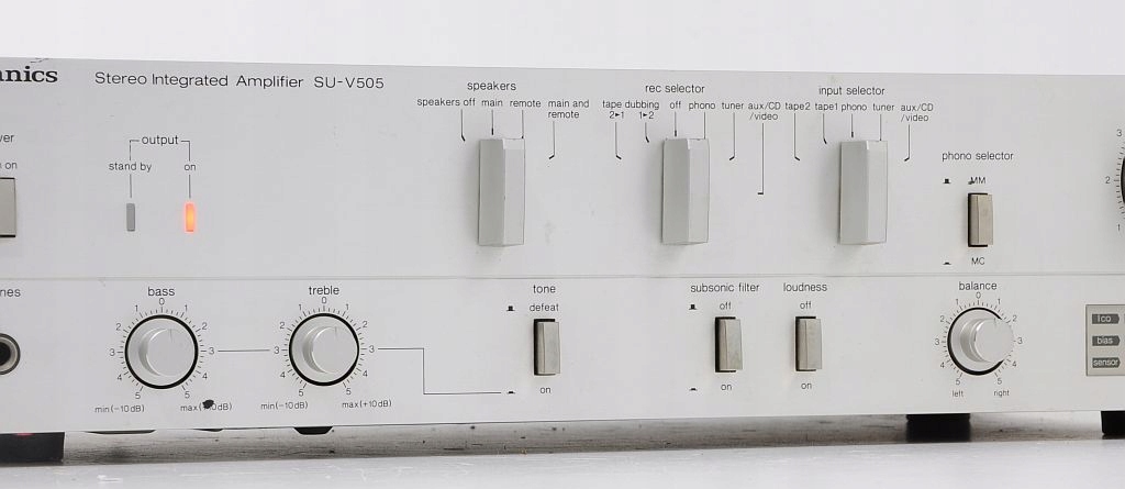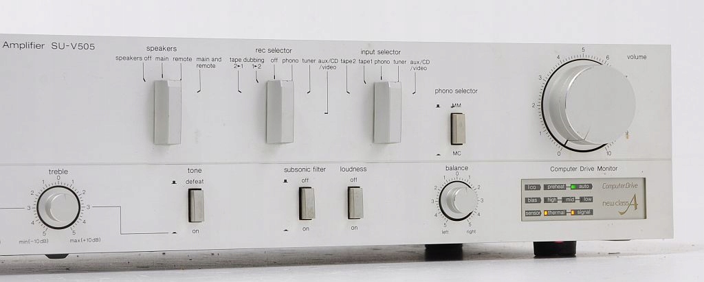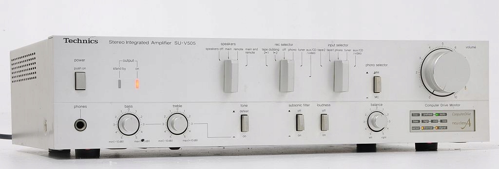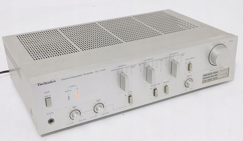 Potężny, mocny i piękny wzmacniacz renomowanej firmy TECHNICS. W 100% sprawny, solidnie wykonany Technics z czasów gdy klocki tej firmy wyznaczały standardy sprzętu klasy HI-FI. Oferowane urządzenie mimo niepozornego wyglądu powala wszystkie nowe wynalazki Technicsa typu SUV300 SUV500 , dopiero SUV700 MK2 można zacząć porównywać z tym skromnie wyglądającym wzmacniaczem. Wiadomo nic nie bierze się z powietrza , układ wzmacniacza oparty na potężnym układzie końcowym , który jest chłodzony ciekłym azotem a do odprowadzenia ciepła z układu chłodzenia użyto aluminiowych listków , które łącznie mają dość sporą powierzchnię. Tak dopracowany sprzęt z pewnością szybko się nie „zagotuje” , poza tym ten smok pożera w ekstremalnych warunkach hmm 370 W prądu , więc POWER gwarantowany :)