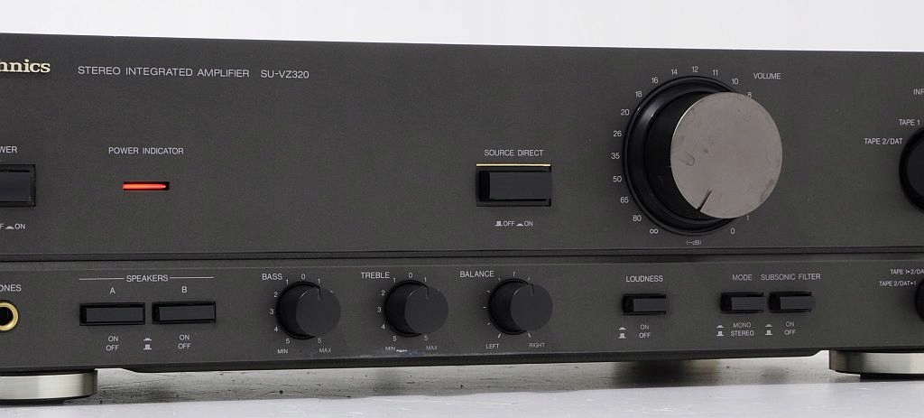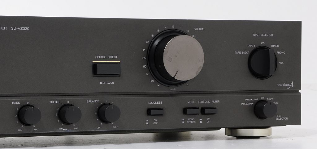 SU-VZ320 to doskonale brzmiący i bardzo mocny wzmacniacz pracujący w New Class A, ma doskonały dynamiczny bas i czysty sopran, można na nim słuchać wszystkich rodzajów muzyki, jego stereofonia to dokładne odzwierciedlenie pełnej sceny muzycznej z wszystkimi detalami, tu nic nie ujdzie uwadze słuchacza jednym słowem bardzo dobry wzmacniacz do słuchania muzyki i to bardzo głośno. To naprawdę super wzmacniacz o żywym i pełnym dźwięku, na fundamencie mocnego i sprężystego basu. Jego nieocenioną zaletą jest funkcja LOUDNESS - podbicie dynamiki, sprawia ona że dźwięk staje się potężniejszy i bogatszy w bas i soprany. Panel przedni wykonany z aluminium.