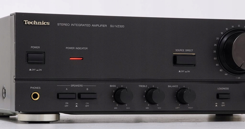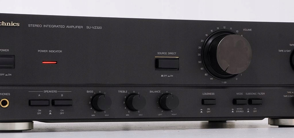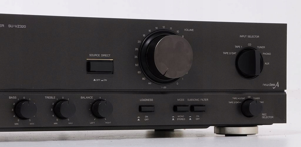 SU-VZ320 to doskonale brzmiący i bardzo mocny wzmacniacz pracujący w New Class A, ma doskonały dynamiczny bas i czysty sopran, można na nim słuchać wszystkich rodzajów muzyki, jego stereofonia to dokładne odzwierciedlenie pełnej sceny muzycznej z wszystkimi detalami, tu nic nie ujdzie uwadze słuchacza jednym słowem bardzo dobry wzmacniacz do słuchania muzyki i to bardzo głośno. To naprawdę super wzmacniacz o żywym i pełnym dźwięku, na fundamencie mocnego i sprężystego basu. Jego nieocenioną zaletą jest funkcja LOUDNESS - podbicie dynamiki, sprawia ona że dźwięk staje się potężniejszy i bogatszy w bas i soprany. Panel przedni wykonany z aluminium.