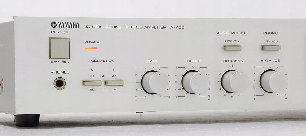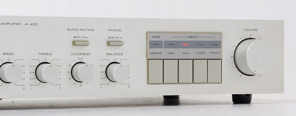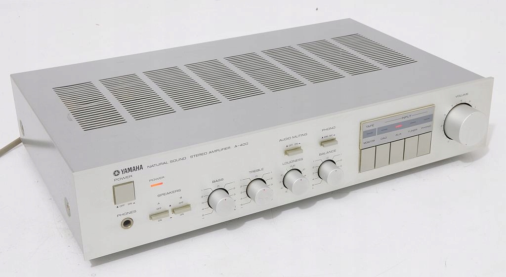 Rewelacyjny wzmacniacz , który potrafi o wiele więcej niż nam się wydaje z wyglądu. Proszę mi wierzyć ... przednia ścianka nie musi mieć 14cm wysokości by wzmacniacz traktowano poważnie ... ;) Ta jednostka pod względem brzmienia dorównuje bez problemu wzmacniaczom powszechnie uznawanych za dobre. A-400 to godny rywal dla klocków z przedziału cenowego 1500,00 zł wśród nowych wynalazków. Gra rewelacyjnie, super stereofonia, dobrze rozłożona scena i dynamiczny bas. Urządzenie w 100% sprawne, bez napraw, końcówka mocy oparta na tranzystorach!