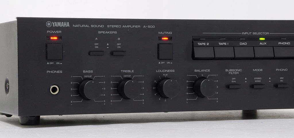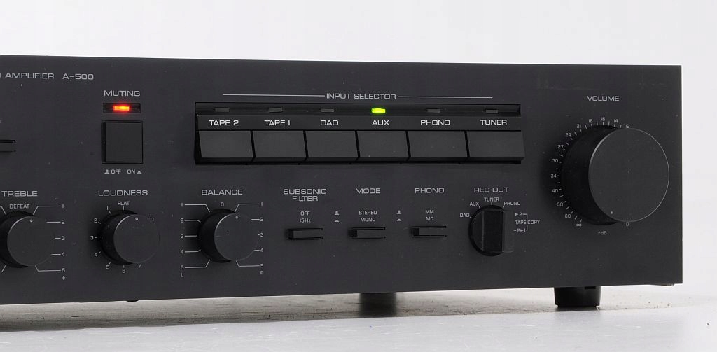 Rewelacyjny wzmacniacz , który potrafi o wiele więcej niż nam się wydaje z wyglądu. Proszę mi wierzyć ... przednia ścianka nie musi mieć 14cm wysokości by wzmacniacz traktowano poważnie ... ;) Ta jednostka pod względem brzmienia dorównuje bez problemu wzmacniaczom powszechnie uznawanych za dobre. A-500 to godny rywal dla klocków z przedziału cenowego 1500,00 zł wśród nowych wynalazków. Gra rewelacyjnie, super stereofonia, dobrze rozłożona scena i dynamiczny bas. Urządzenie w 100% sprawne, bez napraw, końcówka mocy oparta na tranzystorach (4 x SanKen), kondensatory Nichicon o pojemności 2 x 12 000 bez żadnych wybrzuszeń, bez wycieków! Polecam!