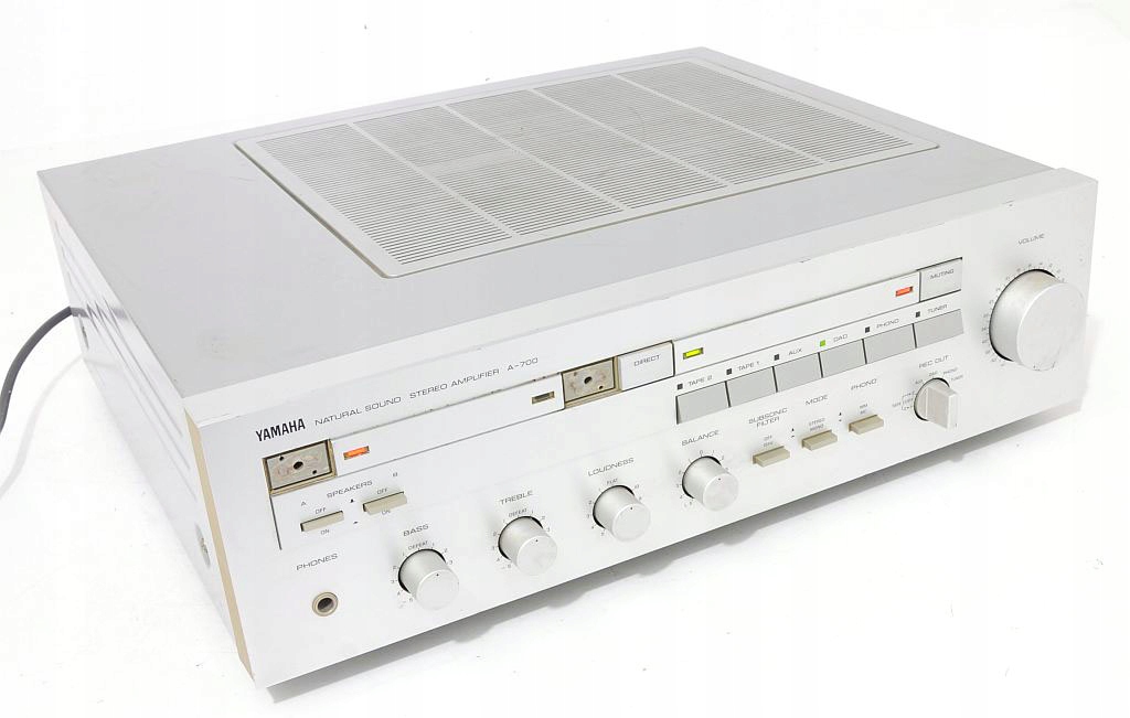 Solidny i piękny wzmacniacz Yamaha. Panel przedni z aluminium. Zastosowano w nim typowy komplet regulatorów barwy: niskie, wysokie i kontur. Zestaw funkcji które oferuje sprawia że świetnie się nadaje na serce dobrego zestawu stereo. Dźwięk jest dynamiczny z mocnym basem. Yamaha jak zawsze oferuje solidne tranzystorowe brzmienie, dobrą dynamikę i ostrą stereofonię. Bije na głowę obecne każde wzmacniacze w cenie do 2000-2500. Brzmienie czyste z mocno odczuwalnym basem. Model na tyle znany że nie ma sensu opisywać go więcej. Sprzęt wzorowo zaprojektowany i mistrzowsko wykonany. Aukcja w szczególności skierowana do posiadaczy tej firmy ale nie tylko, to urządzenie może być uzupełnieniem każdego poważnego zestawu audio. Gwarantuje że wasz zestaw zagra z całkowicie nowym bogatym i urozmaiconym w scenę brzmieniem.