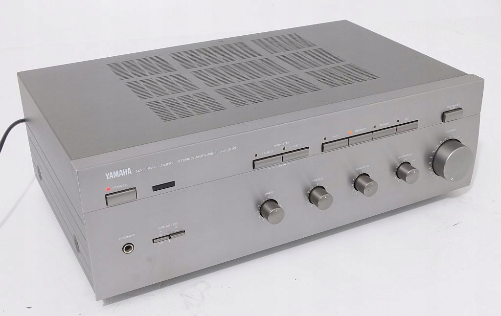Solidny i piękny wzmacniacz Yamaha. Panel przedni z aluminium. Zastosowano w nim typowy komplet regulatorów barwy: niskie, wysokie i kontur. Zestaw funkcji które oferuje sprawia że świetnie się nadaje na serce dobrego zestawu stereo. Dźwięk jest dynamiczny z mocnym basem. Yamaha jak zawsze oferuje solidne tranzystorowe brzmienie, dobrą dynamikę i ostrą stereofonię. Polecam !!!