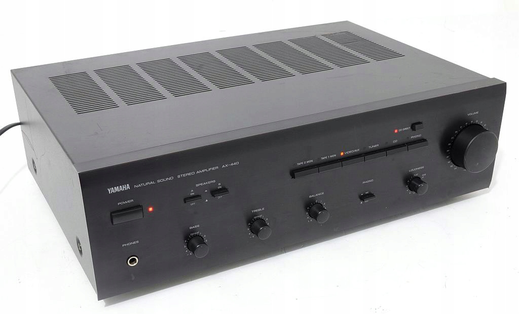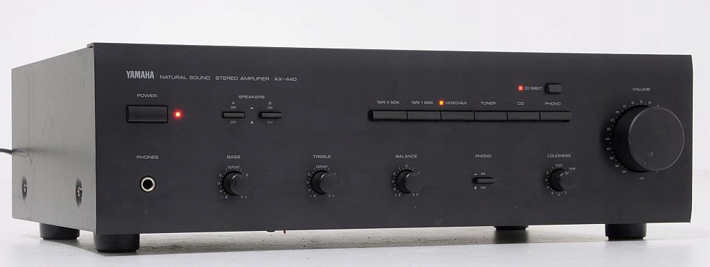 Solidny i piękny wzmacniacz Yamaha. Panel przedni z aluminium. Zastosowano w nim typowy komplet regulatorów barwy: niskie, wysokie i kontur. Zestaw funkcji które oferuje sprawia że świetnie się nadaje na serce dobrego zestawu stereo. Dźwięk jest dynamiczny z mocnym basem. Yamaha jak zawsze oferuje solidne tranzystorowe brzmienie, dobrą dynamikę i ostrą stereofonię. Polecam !!!