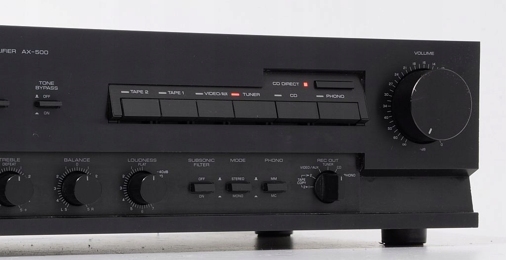 Solidny i piękny wzmacniacz Yamaha. Panel przedni z aluminium. Zastosowano w nim typowy komplet regulatorów barwy: niskie, wysokie i kontur. Zestaw funkcji które oferuje sprawia że świetnie się nadaje na serce dobrego zestawu stereo. Dźwięk jest dynamiczny z mocnym basem. Yamaha jak zawsze oferuje solidne tranzystorowe brzmienie, dobrą dynamikę i ostrą stereofonię. Polecam !!!