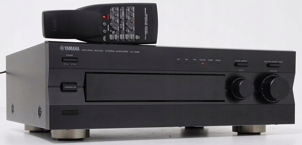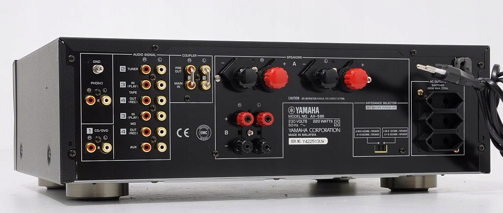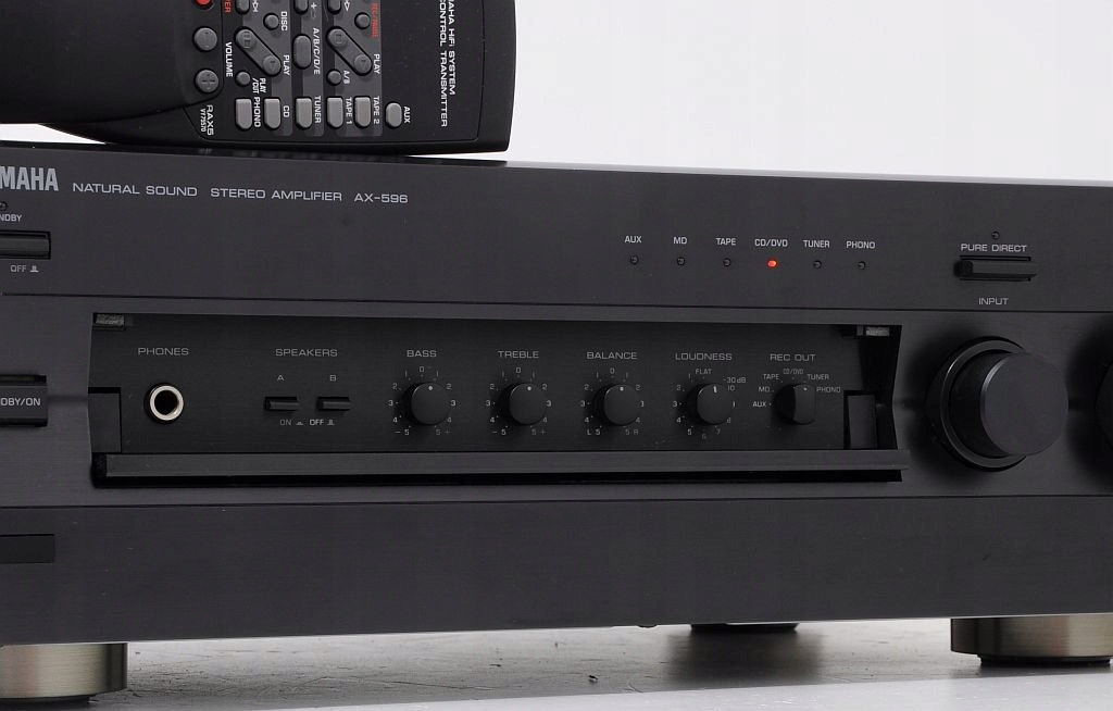 Przedmiotem sprzedaży jest wzmacniacz producenta, którego przedstawiać nie trzeba. Sama nazwa marki - "Yamaha" mówi sama za siebie. AX-596 to jeden z najnowszych wzmacniaczy tego producenta. Konstrukcja wysokiej klasy, bez kompromisów. Wizualnie sprzęt robi spore wrażenie. Pięknie wygląda panel przedni wykonany ze szczotkowanego aluminium, pod gustowną klapką znajduję się rzadziej używane przyciski i pokrętła. Świetnie sprawuje się selektor zmiany źródła, a znajdujące się nad nim diody dopełniają świetny efekt wizualny. Zaglądając do wnętrza przez wąskie "kratki" widać sporej wielkości transformator i niezwykły, charakterystyczny dla wzmacniaczy Yamahy ...porządek - dobrze rozplanowaną symetryczną budowę toru sygnału dla obu kanałów.